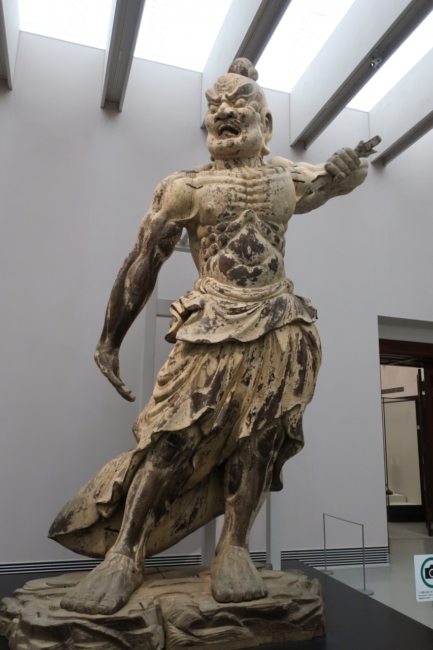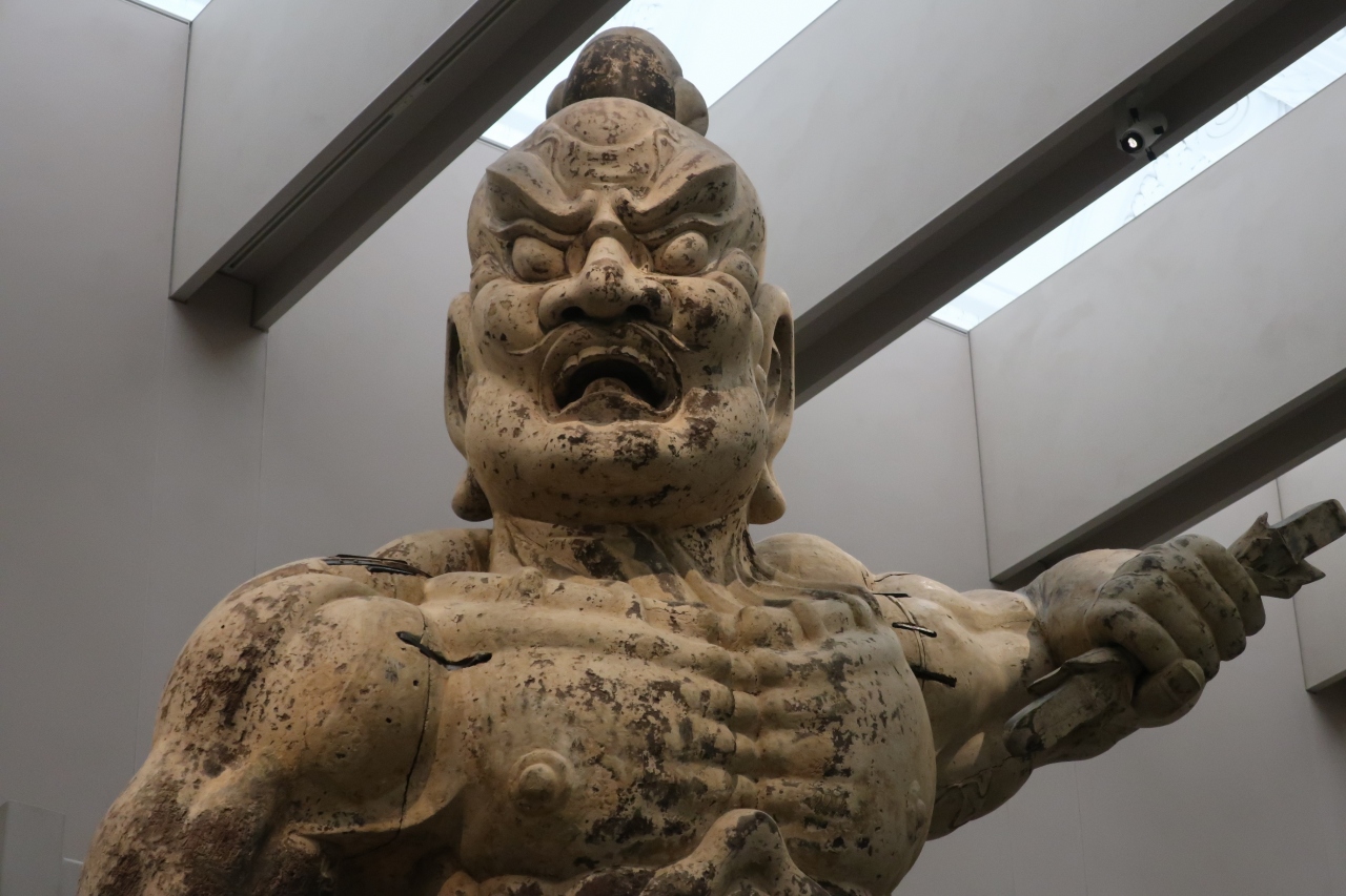 この日はあいにくの雨。以前から奈良観光で雨の日はこの博物館に足を運ぼうと決めていた。訪れたときは「なら仏像館」と「青銅器館」が開かれており、ミュージアムショップと合わせて2時間ほどかけて鑑賞した。飛鳥時代から鎌倉時代にかけて奈良の寺院に伝わる仏像が一堂に展示されている。たまたまだが、吉野の金峯山寺仁王門にある金剛力士立像が展示してあった。仁王門は改修中で、令和10年度の完工まで同博物館で公開するという。約5メートルの高さがある巨像が2体。明るい展示室で見ると、ものすごい迫力だ。