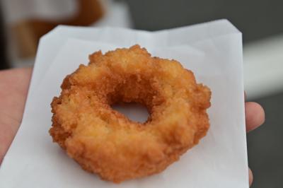 重要伝統的建造物群保存地区で知られる宇陀松山にほど近い場所にある。うだアニマルパーク第二駐車場の横だ。営業日がとても少ないドーナツ店だが、運よく開店時に訪ねることができた。店先には「手ごね松山ドーナツ」の文字が。プレーン、シナモンのほか、この日は大和当帰のドーナツがあるという。三種類それぞれ買って、焼きたてをほおばった。ドーナツは外はサクサク、中はほっこりのタイプ。大和当帰のドーナツは輪を作らず、中にしっかり大和当帰を練り込んだ逸品だ。チラシをもらったが、材料すべての出自が書いてあり、ドーナツへのこだわりが浮き彫りになっていいた。