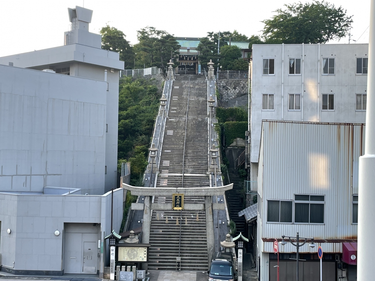 JR下関駅から繁華街に行く途中にある。小高い丘の上にある社殿に向かって一直線に伸びる階段がとても印象的な神社だ。「大歳神社」という名の神社は全国各地にあるが、ここは源義経が壇ノ浦の戦いの前に戦勝を祈願した場所で、戦後、義経への畏敬の念を込めて地元民が建立したという。時代は下って、明治維新で高杉晋作らが創設した奇兵隊の旗揚げの軍記も奉納されている。