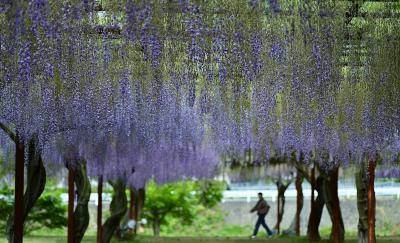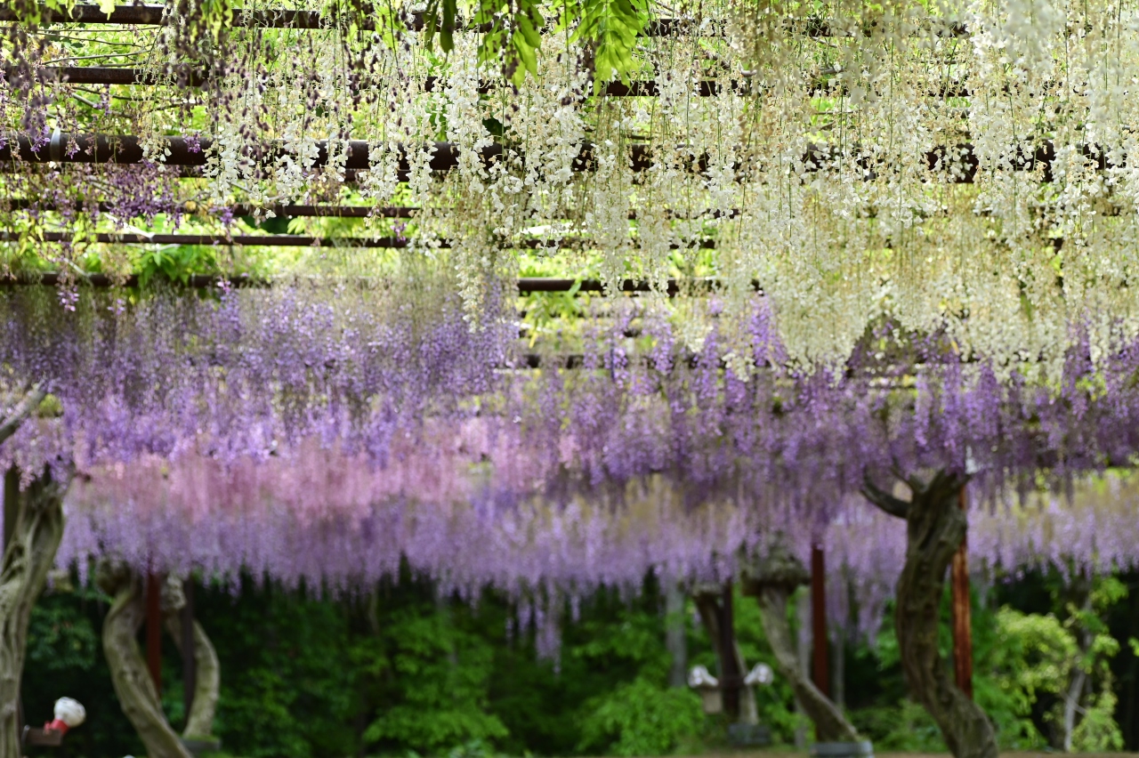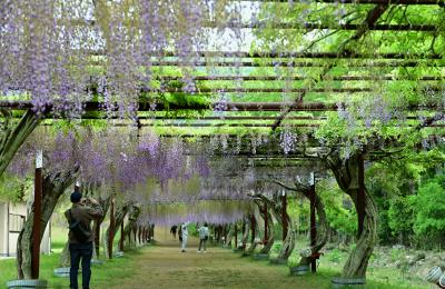 岡山県を代表する藤の名所だ。毎年4月29日から大型連休いっぱいは「藤まつり」が開かれ、満開の花が楽しめる。が、2022年は5月1日に訪問したが、すでに花が終わっていた。自然が相手だけに「こんな年もあるか」と割り切らなければならない。結局、5月2日で「藤まつり」は閉幕した。ただ、花は終わっていても、園内に堂々と鎮座する藤の数々は素晴らしい。これからもずっと楽しめるはずだ。