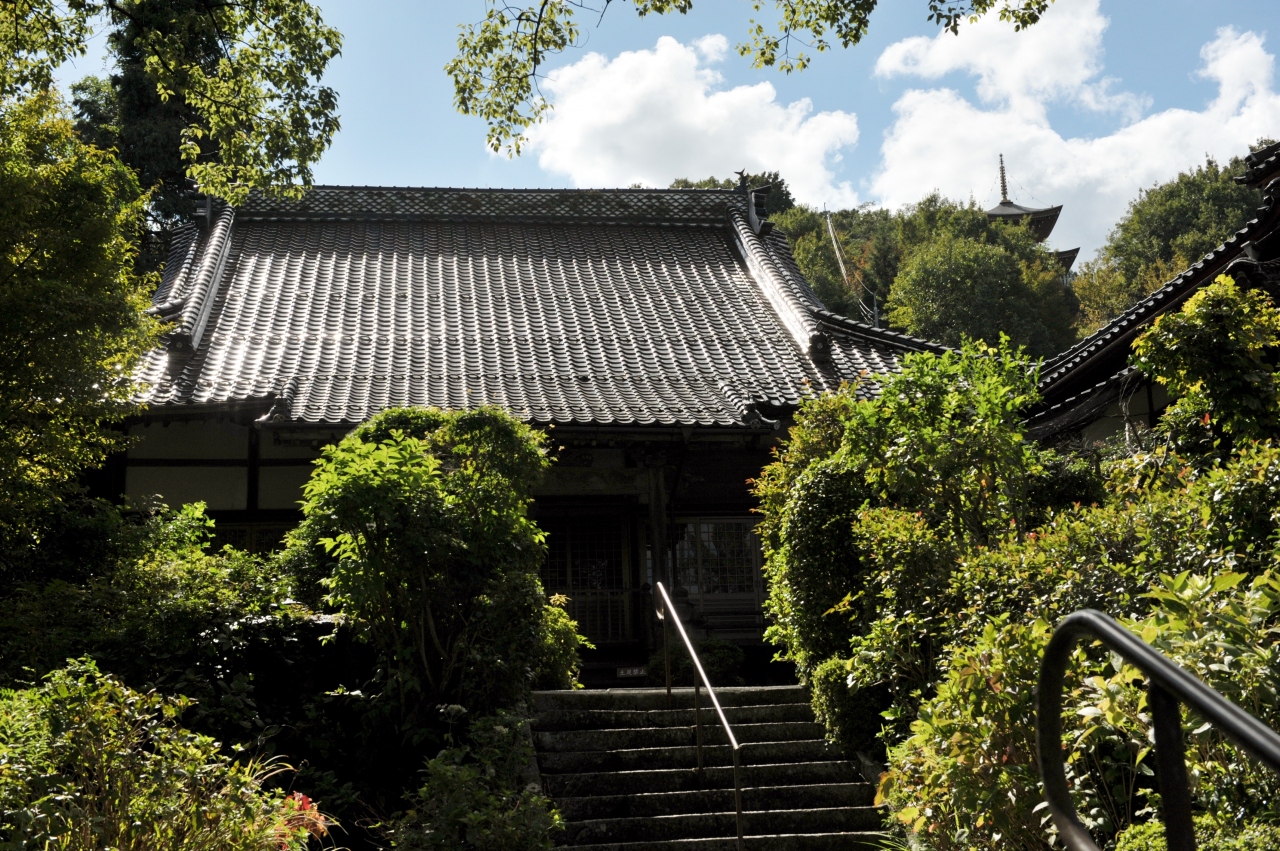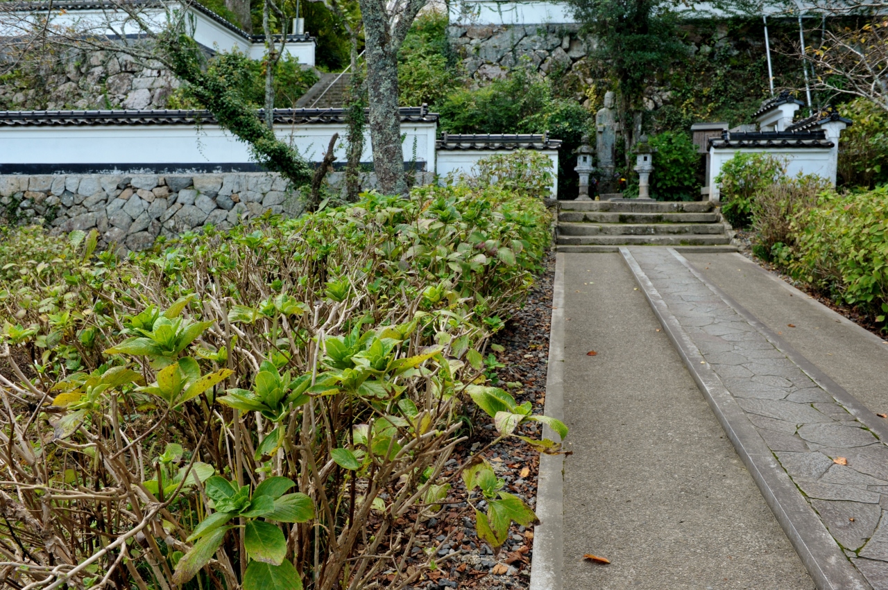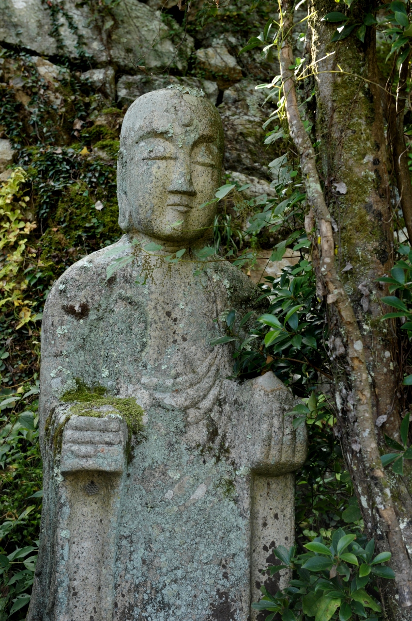 車で行ったのだが、すぐにはこの場所がわからずに少し探してしまった。津山市の中心市街地から少し南側に行った山の中腹にある。JRを渡った山の中腹だ。山門から少し登っていく参道が伸びているが、その両側にアジサイが植わっている、なだらかな地面が広がっており、いかにもアジサイの名所というような斜面だ。市街地を見下ろすような本堂は小ぶりだが、端正な建物だ。個人的には参道途中にある石仏が気にいった。お地蔵さんだろうか。耳が長く、まるで飛鳥仏のような姿をしている。