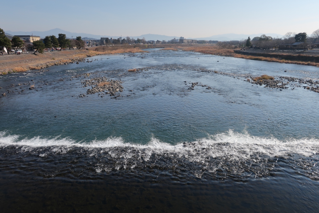 大ざっぱに言えば京中の西側を流れる川だ。嵐山までは川下りで有名な保津川、嵐山周辺は大櫃川と名前を変えるが、正式名称は源流から淀川に合流するまで桂川という。対比される鴨川とは異なり、郊外の住宅街、田園部をのんびりと流れるイメージだ。下流部は河川敷にスポーツ施設などが広がる。ハイライトは嵐山だろう。渓谷美と川の流れが調和して国内を代表する観光地を演出。平安貴族が舟遊びをした優雅な雰囲気を川が醸し出している。