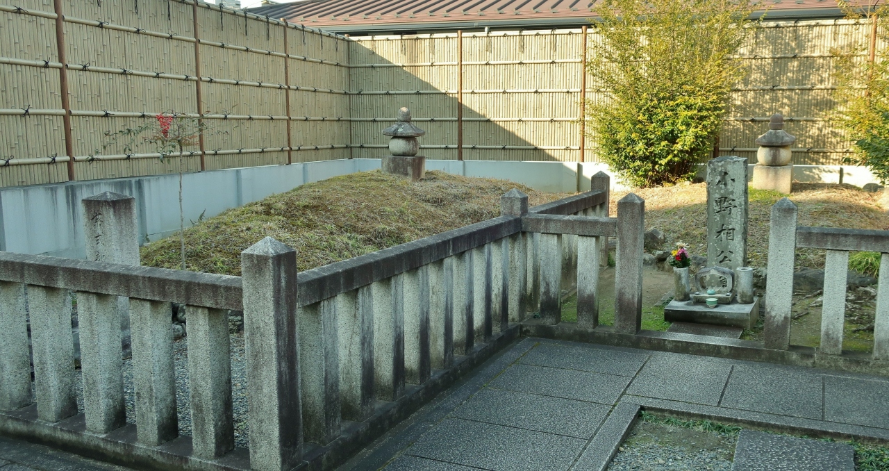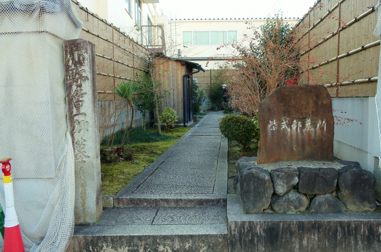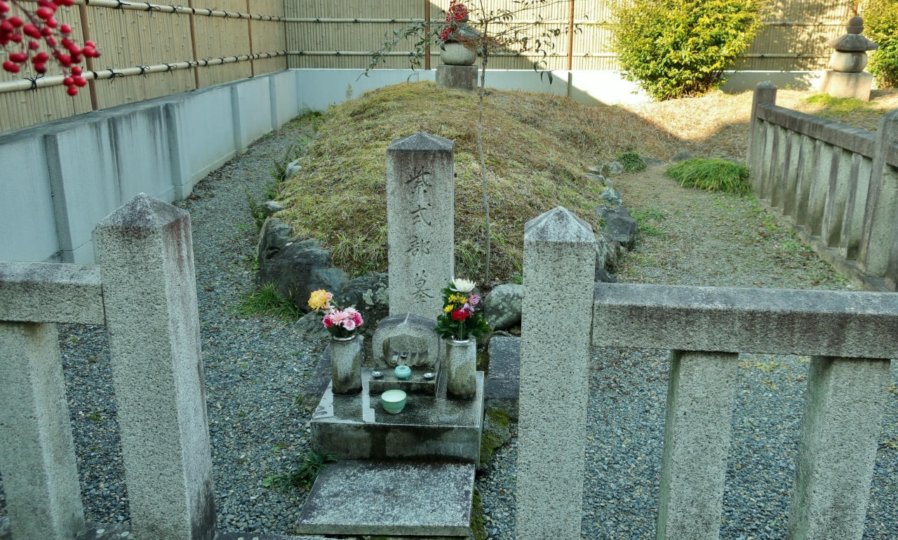 堀川北大路と堀川紫明のちょうど中間付近にある。島津製作所の一角のような場所だ。入り口の堀川通り沿いには古い石碑で「小野篁卿墓」、新しい石碑で「紫式部墓所」とある。もともと篁の墓があった場所に、紫式部の墓を移設したとされる。なぜ二人の墓が隣接しているのか。源氏物語や作者の紫式部を供養する「源氏供養」という中世にみられた文化に鍵があるかもしれない。紫式部は源氏物語で好色な物語を描いたことから地獄に落ちたと考えられており、その霊を救うために篁の墓に寄せたのかもしれない。高級官吏だった篁は夜になるとあの世に行き、閻魔大王の補佐をしていたと物語に書かれた人物。数人をあの世から救い出しており、そうした超能力が源氏供養にぴったりと考えたのだろうか。小さな墓所だが、なかなか興味深い場所だ。