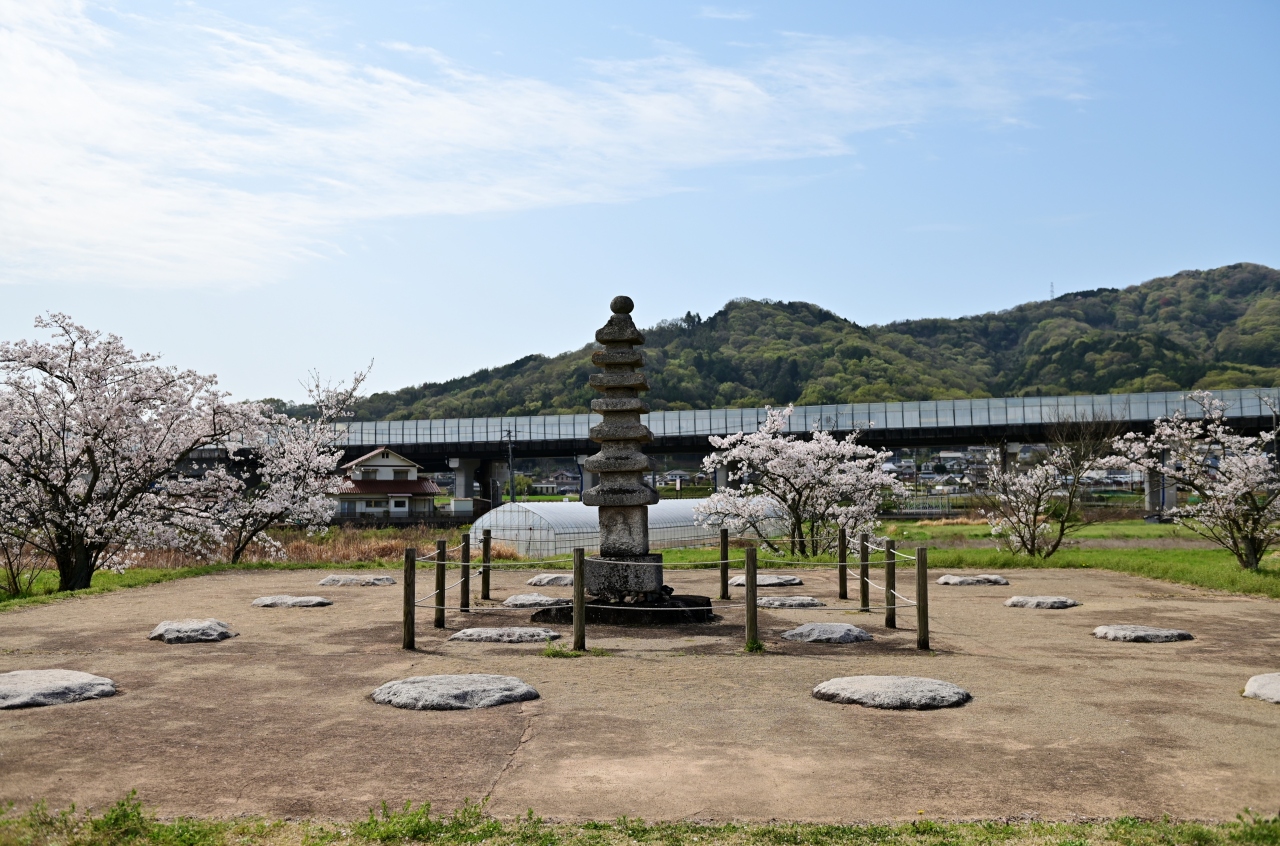 備前の巨大古墳である両宮山古墳の近くにある。古墳から仏教公伝を経て寺院が建てられた宗教の巨大な流れが実感できるような場所だ。とはいえ、現地には伽藍の説明図と塔の基壇が残るのみで、少し想像しにくい。広々とした跡地が保存されており、現地に立って目をつぶって想像してみよう的な場所だ。幹線道路から少し住宅街の狭い道を入った所にある。