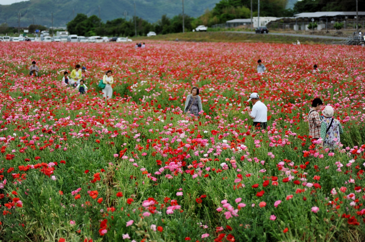 干拓地に道の駅があるのは珍しいのではないだろうか。もっと言えば道の駅ができるような幹線道路が干拓地にできるのは珍しいかもしれない。周辺の地理に疎いが、笠岡市内を迂回するバイパスが干拓地にできており、その沿線にあるのがこの道の駅だ。情報発信のほか、カフェ、レストラン、農水産物の直売、トイレなどの休憩施設で構成されている。直売で驚いたのは水産物だ。普段見慣れない魚がずらりと並んでいたほか、魚の詰め放題などユニークな試みも。また、今回、この道の駅に行った最大の理由は笠岡ベイファームの花畑だ。道路を走る客を取り込むのが道の駅だが、道の駅が道路を走る客を創出しているようでいい取り組みだ。一面に広がるポピーはなかなか。今度は真夏にひまわりを見に行こうと思う。