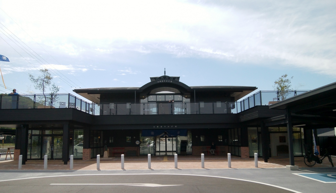 2021年3月にオープンしたばかりの道の駅だ。矢掛町中心部は山陽道矢掛宿跡の古い町並みを生かしたまちづくりが進んでおり、その入り口機能というのがコンセプトのようだ。そう思わせたのは物販機能の少なさだ。近年の道の駅は、道の駅か直売施設か区別がつきにくい例が多いが、ここは物販をアンテナショップ的に絞って最小限に抑えている。宿場町での物販や町並み散策に誘導するスタンスをしっかり守っている感じだ。直売施設が好きな向きには物足りない側面もあるかもしれないが、近くの直売施設も新築されており、機能分担しているのだろう。建物は現代の本陣といった感じだ。デザインは地元・岡山県出身の工業デザイナー・水戸岡鋭治氏。最近は鉄道関係で脚光を浴びているが、意匠のあちこちに水戸岡流が感じられてファンにはたまらない建物だ。