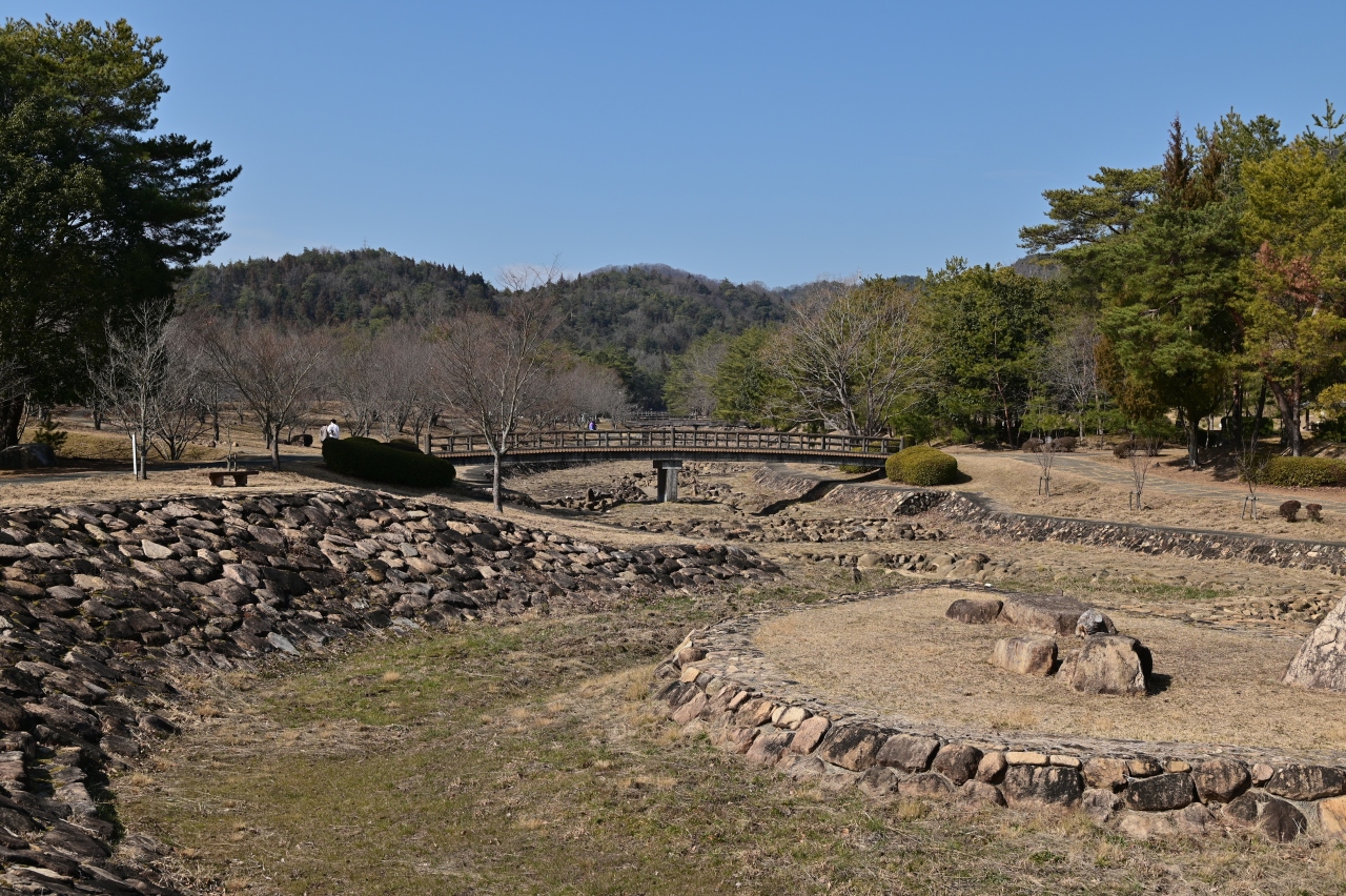 白村江の戦いで敗れた大和朝廷は唐・新羅の侵攻に備え、西日本各地に〝国営〟の防御施設を築造する。そのうちの一つが鬼ノ城だ。「城」と名のつく施設はイコール武将の拠点というイメージがあるだけに、異彩を放つ。瀬戸内海を進み、機内を直撃する外敵を防御するのだろうが、それにしては内陸にある。当時はかなり海が内部まで入り込んでいたのだろうか。そう言えば、眼下に秀吉の水攻めで高松城址があり、低地であることが納得いく。有名な古代の遺構にしてはかなり手が入った整備をしており、城郭の復元や情報センター、3キロ弱の散策路など観光的にも時間消費ができる。