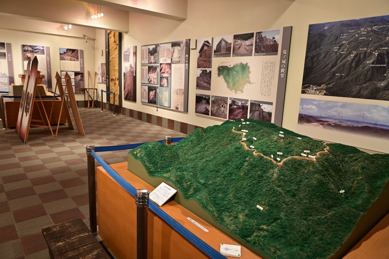 鬼ノ城の駐車場そばにある施設だ。山頂が城を巡るウオーキングルートになっており、そのための休憩施設と、鬼ノ城について説明するガイダンス施設で構成する。鬼ノ城は全容が解明されていない「古代の山城」だけに、模型や図面で存在を説明してくれるガイダンス施設は必須。場所も城へ行くルートの「入り口」にあるので必ず立ち寄るのをお勧めする。