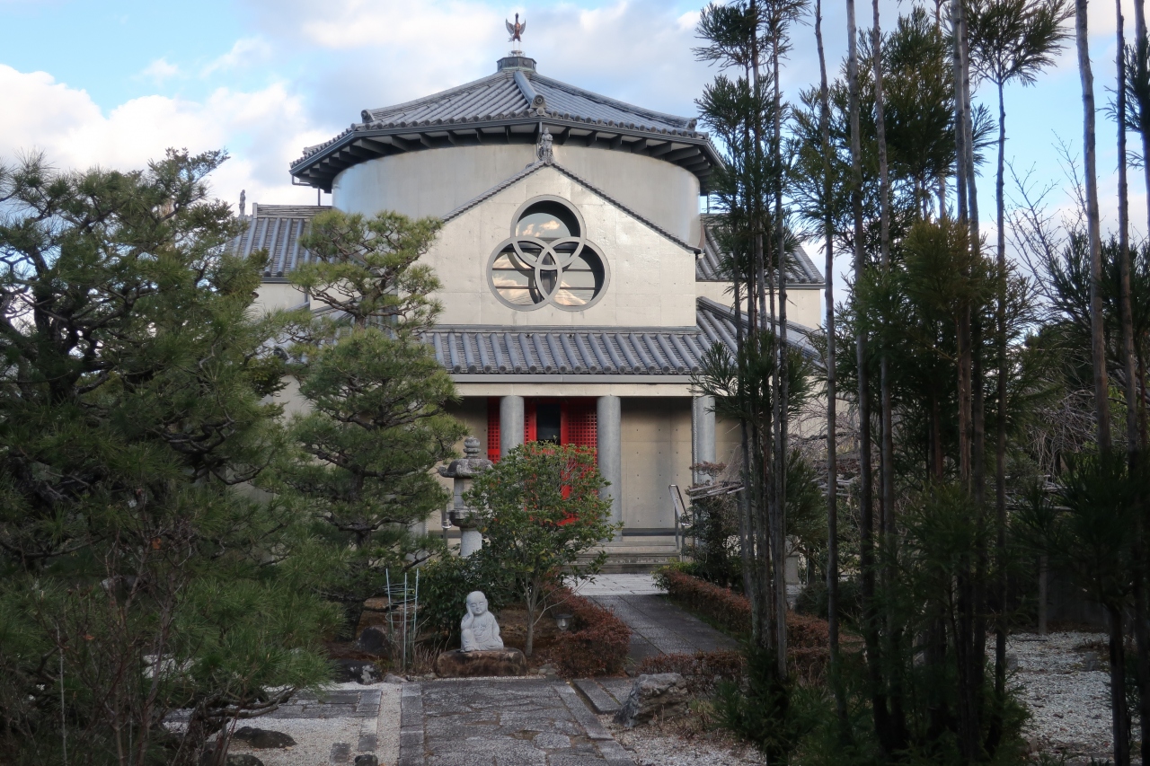 異彩を放つ本堂だ。浄土宗のお寺だが、相次ぐ火事に悩まされており、仮普請で本堂を運営していた。1993年に現代建築デザインによる本堂を再建し、現在に至る。医師として知られる曲直瀬道三の墓があり、山門前には墓の存在を知らせる石碑がある。