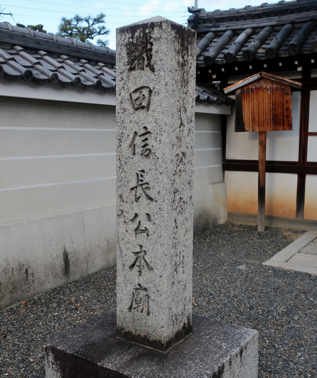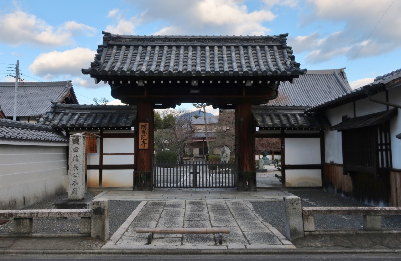 門前に掲げられた寺伝によると、本能寺の変が起こった時、この寺を開創した清玉上人は僧徒を引き連れて現地に駆け付けたが、信長は既に自害。結局、その場で火葬し遺骨を法衣に包んで持ち帰ったという。そうした伝説に基づき、境内には「信長の墓」がある。門前にも碑があり、訪れる人々の目を奪っていた。周辺は寺院が建ち並ぶエリアで、落ち着いて参拝ができる。
