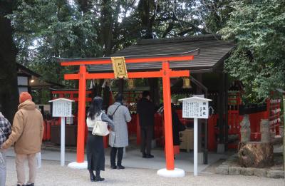 南向きの楼門を糺の森の方角へ出ると、右手に見える摂社が相生社だ。男女の縁などあらゆる縁結びにご利益があるから、参拝客に大人気の社だ。すぐ横には「京の七不思議」の一つで二本の木が一本に結ばれている「連理の賢木」も。近くでは源氏物語にちなんだ「縁結びおみくじ」や「えんむすび絵馬」なども売られている。これで人気が出ないわけはなかろう。絵馬の奉納には右回り左回りなど作法があり、これもまた人気のルーチンだ。