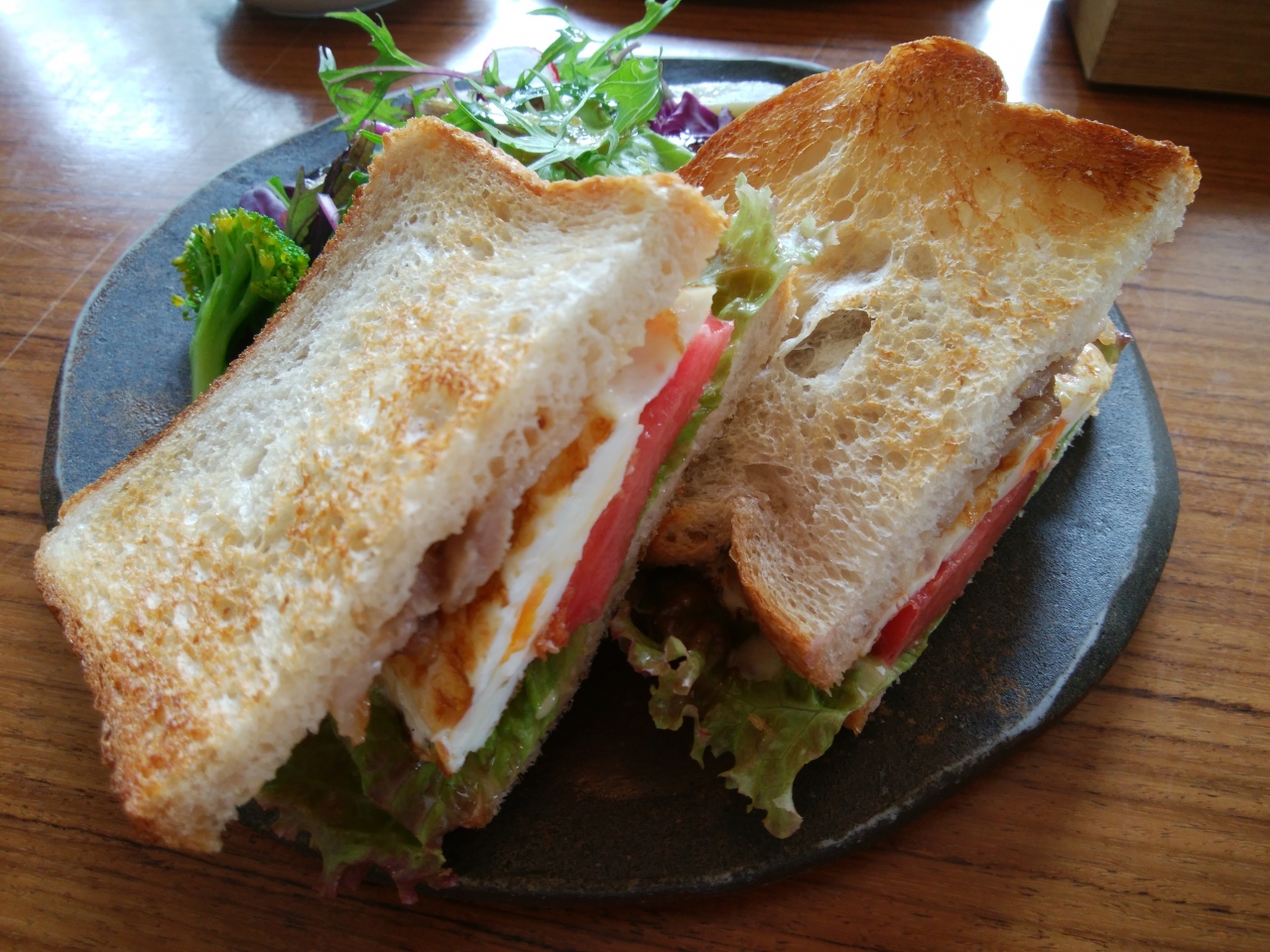 姉妹店が岡山市内にあり、足繁く通っているのでコーヒーがおいしいのは知っていた。この日は和気町藤公園の満開のフジを観賞するために足を運んだ帰りに、ブレックファスト。同公園はフジの満開時であれば多くの人が繰り出すので、人混みを避けて早朝に出かけたのだ。午前10時に到着し、奥さんとBLETサンドウィッチセットをオーダー。不覚にもコーヒーの種類を記録するのを忘れたが、軽やかな酸味に納得だ。午前7時から開いているのはコーヒー党にとって福音。駐車場も店の前に数台分あるので不自由はない。