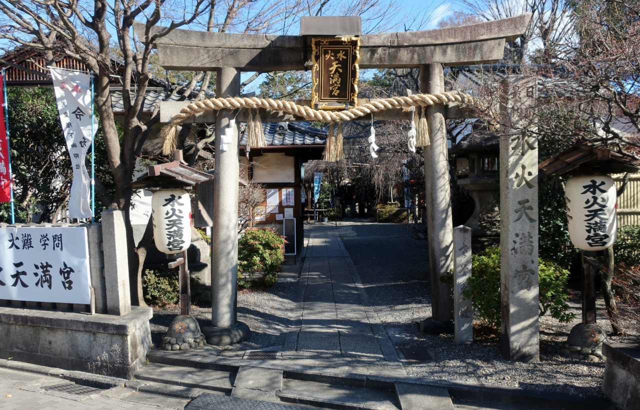 堀川通りのよく見えるところにある。看板があるのだが、社名は何と読むのだろうかと疑問に思っていた。今回参拝して「すいか・てんまんぐう」と読むことを初めて知った。現地の説明によると、923年、醍醐天皇の勅命で「雨水雷火の消除の守護神として菅公を祭る」ために開創されたという。菅原道真の死去から二十年ほどで神格化されているのだ。昔、人々が最も恐れた火事、水害除けの神様だけに、幅広く信仰を集めたのだろう。あまり広くない境内には数多くの摂社もあり、いろんなご利益が詰め込まれているようだった。