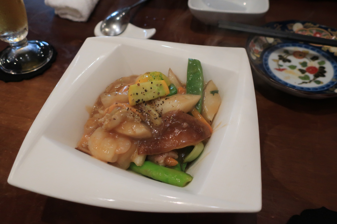 奈良の中心商店街である東向商店街。三条通りとの交差点から北上したところにこの店はある。通り沿いのビルだが、ビルの中でも少し奥まった所だ。そんなに広い店内ではないが、カウンター席とテーブル席がある。この日は奥さんと二人で前菜に蒸し鶏、メインは奈良の極上麻婆豆腐、ゴロゴロ野菜の酢豚、ヤマトポークの肉焼売、こだわり野菜の八宝菜、旬の野菜と海鮮のあっさり炒めをオーダー。飲み物はビールからスタートし、取り揃えが自慢の日本酒をいろいろ選んだ。大和野菜や海鮮物、ヤマトポークを大胆に使っており、中華料理をベースにした創作料理のようだ。何といっても味のセンスがいい。素直に旨いと思った。一品料理に小皿・中皿があり、量の調節がしやすい配慮も。奈良で行きたい店がまた増えた。