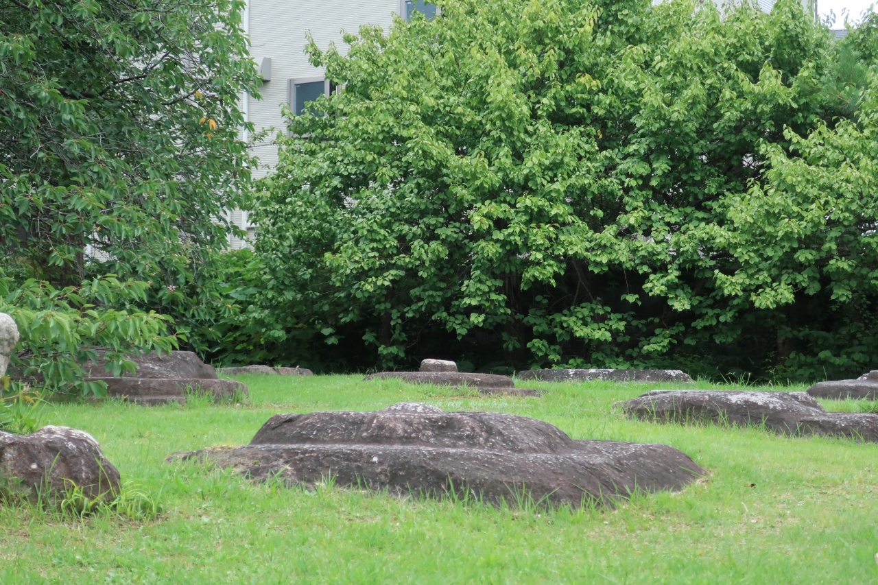 貼り石を施した方墳から覆い土が流出した跡のように見えるが、四方にある浮彫の石仏などの装飾を見ると墓ではないと思える。とにかく不思議な建物だ。寺院にある塔のような建物だろうか。とはいえ、本堂にあたるものが周囲にない。見学テラスが設けられている側は石が露出しているが、うしろ半分は覆い土が残り、山のままだ。横から見上げると、〝山頂〟に置かれた五輪塔が姿を見せる。現地には側面の菩薩像、如来像を従えて頂上に廬舎那仏が祭られていることから、奈良の大仏同様、建造された時代の廬舎那仏の信仰上の位置がうかがえるなどの説明文がある。頭塔のなぞをわかりやすく、そしてなぜ生じたのか、広域に分布しなかったのか、どんな意味を持つかなどの説明文がほしい。大胆な想像を交えても、頭塔の場合、全く構わないと思う。それだけミステリーな遺物だ。