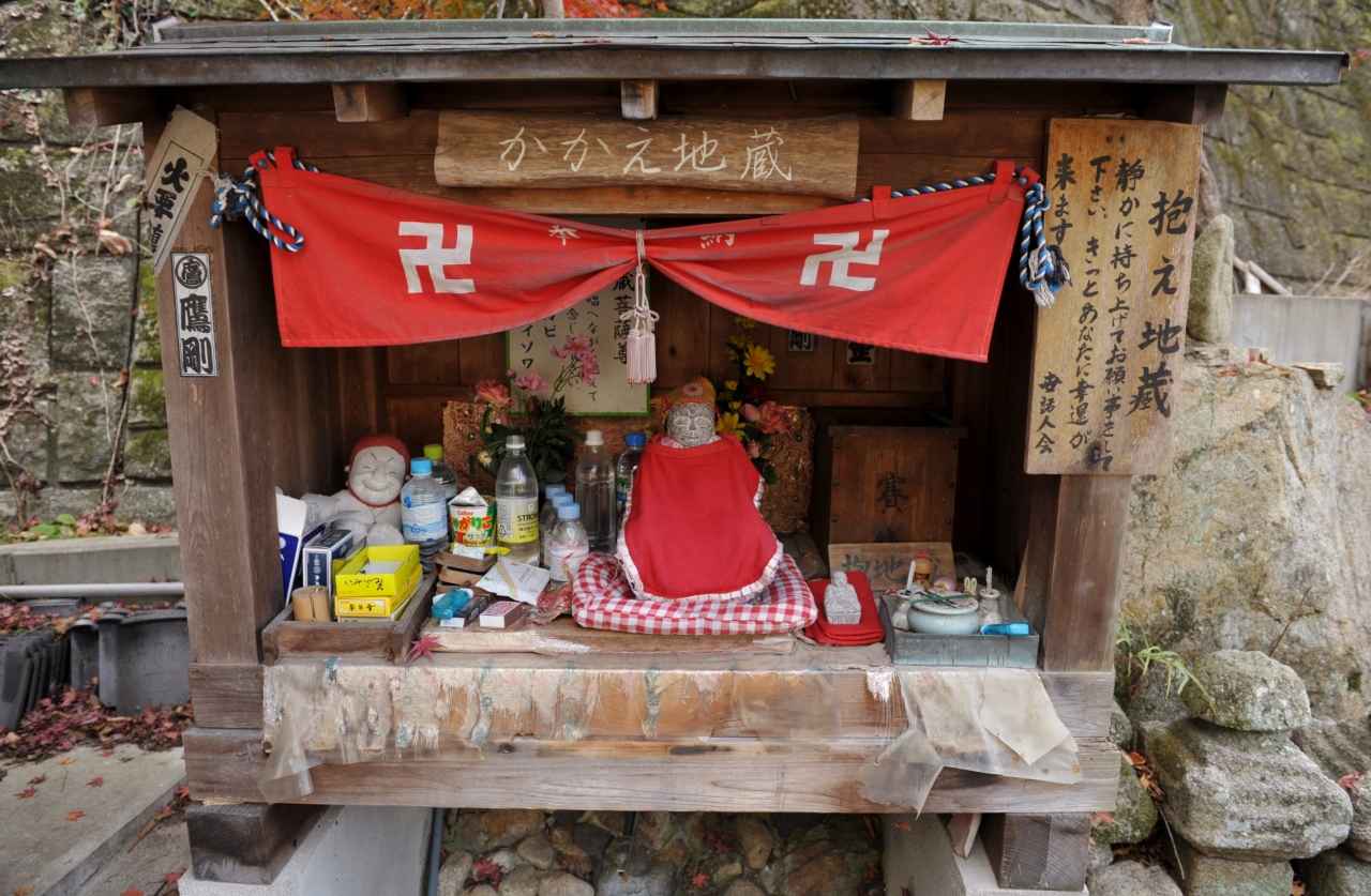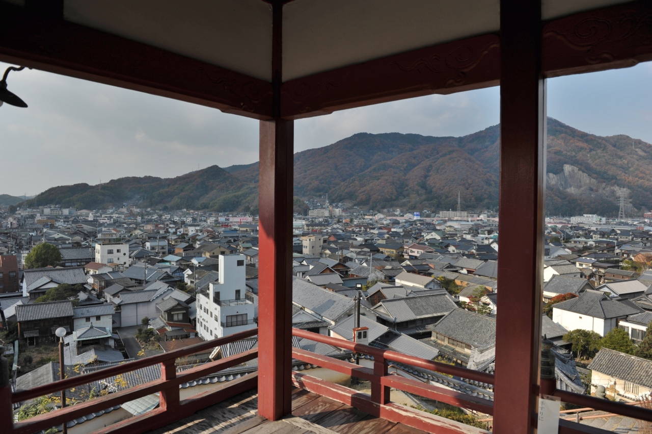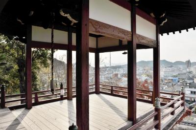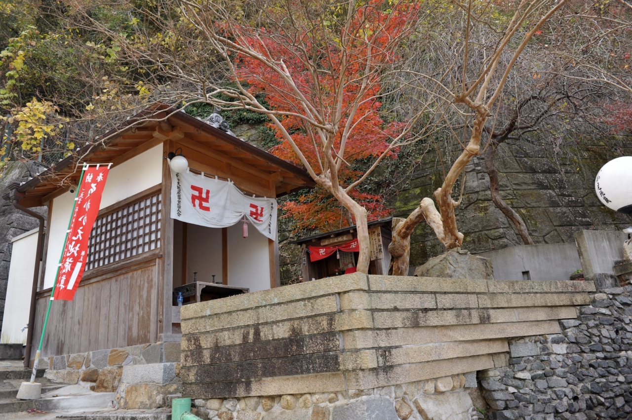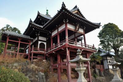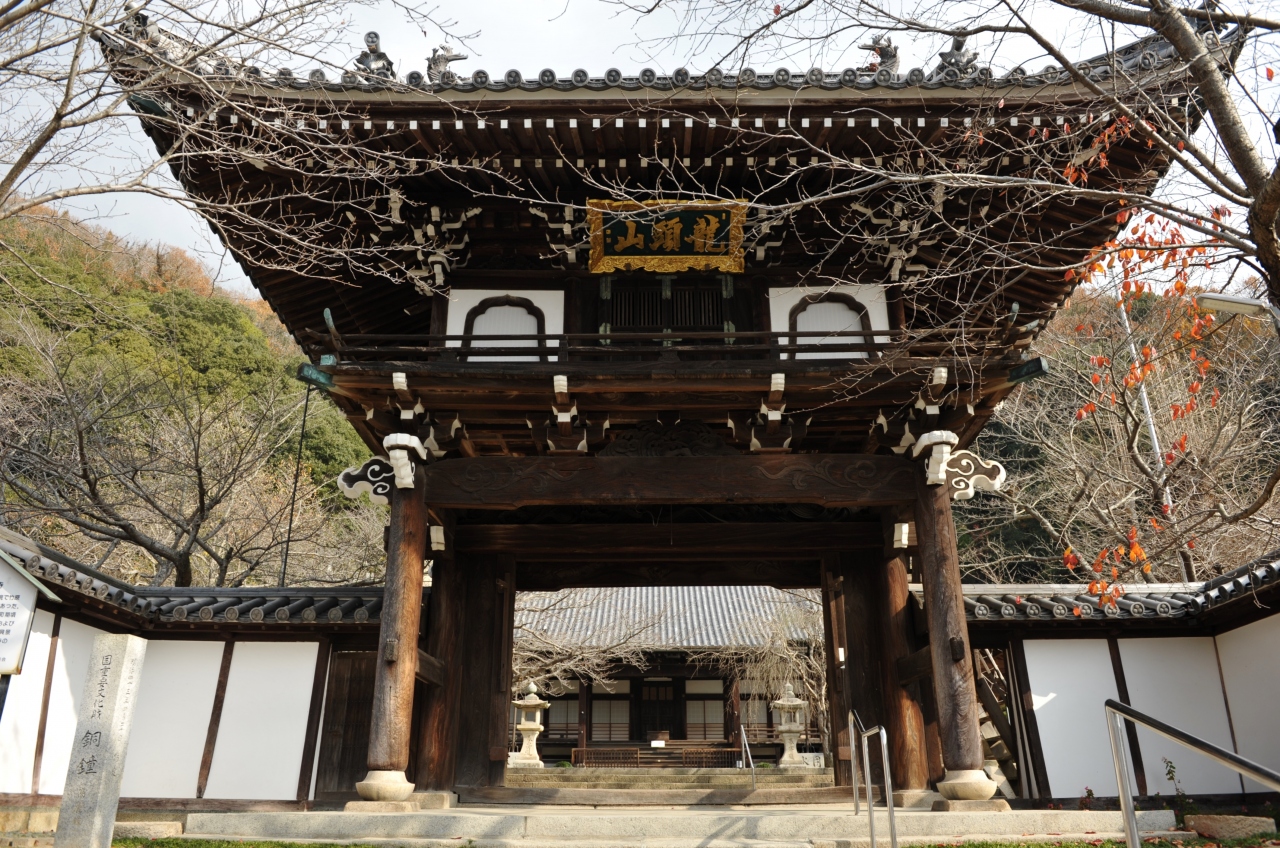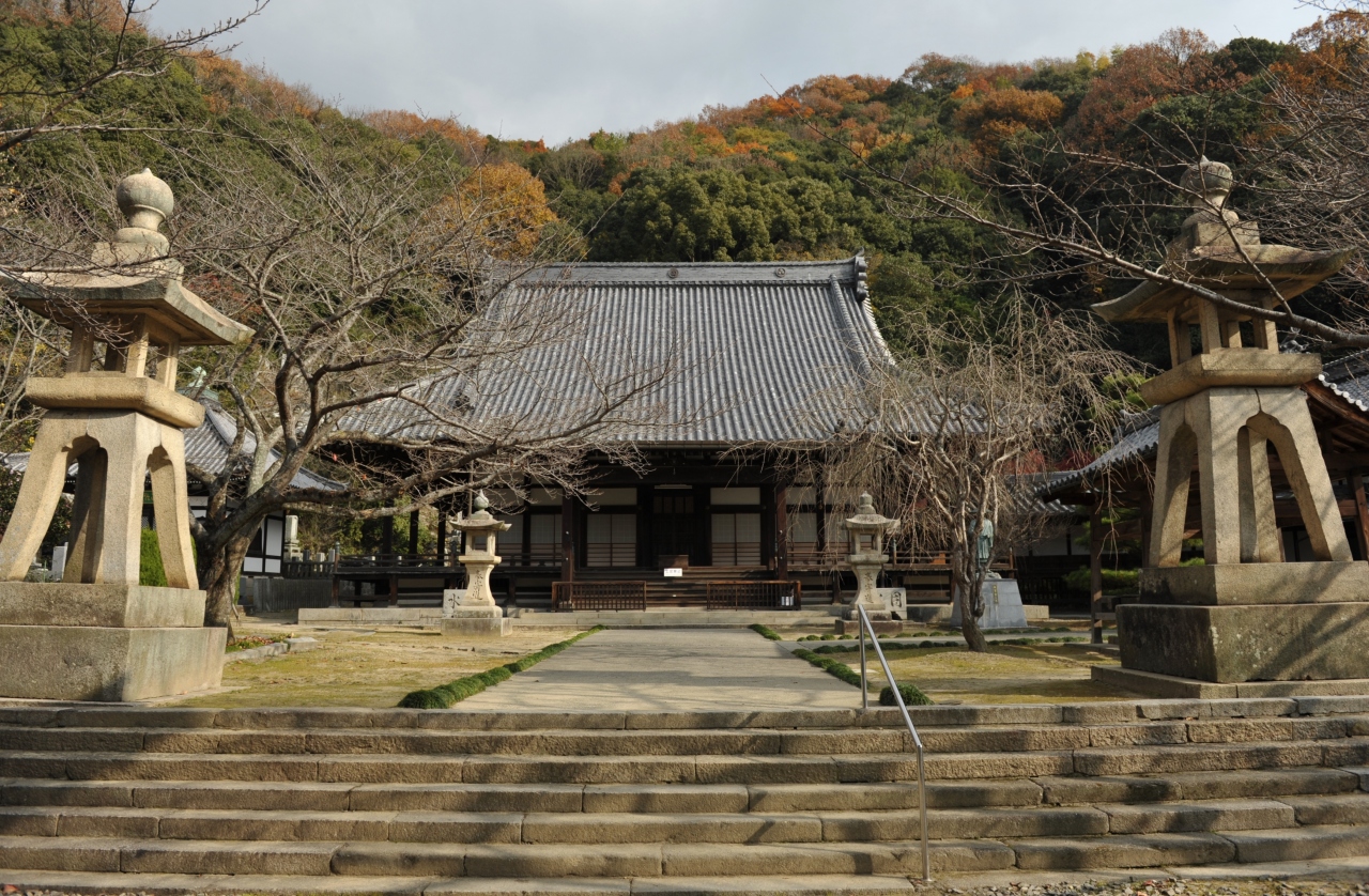伊予国の戦国大名だった河野氏の最後の当主である河野通直が弔われている。河野家は毛利家の庇護のもとで何とか永らえていたが、1587年の豊臣秀吉の四国攻めで小早川軍に降伏。通直は竹原に流された直後に病死した。毛利両川の一人であり豊臣政権の中で道直の後見人的立場であった小早川隆景は病没をいたみ、寺領を寄進して寺を開創したという。現在は真言宗のお寺だ。多様な信仰を集めているとみられ、境内には大師堂や金毘羅さん、さらには石占いの一つである「お抱え地蔵尊」などの塔頭があった。高台にあり、山門の鐘楼門は威風堂々。