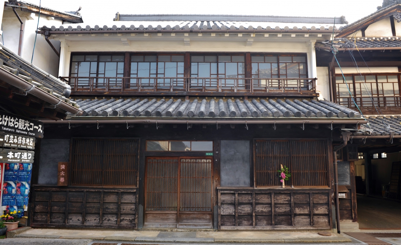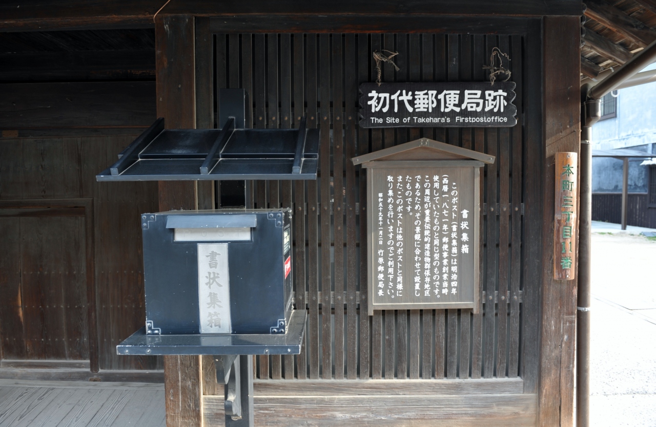 竹原の伝建群のいい場所にある。中央部のメインストリート沿いで、ここを曲がれば西方寺・普明閣だ。近くには旧松坂邸などもある。この建物は竹原で初めての郵便局で、明治4年築だ。昭和初期に郵便局が移転するまでこの辺りは竹原の中心部だったに違いない。