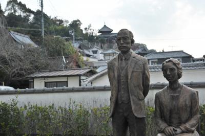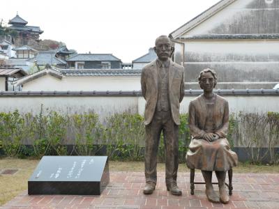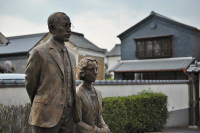 NHK朝の連続テレビ小説『マッサン』にちなんで制作されたのだろう。作者は今井真正氏で、竹原市出身で市内に記念館がある陶芸家・今井政之氏の息子だ。現地には竹鶴政孝の「よいウヰスキーづくりにトリックはない」という言葉の石碑がある(政之氏の揮ごうか?)。遠くに普明閣を望むいい場所だ。ところでドラマの題名は奥さんが主人公を「マッサン」と呼んだのにちなんだはず(これは実話らしいが)。よってここでいうマッサンはドラマ中の「亀山政春」を指すことになるが、像の名前はどうなるのだろう。などと思ってしまった。市のHPには竹鶴政孝・リタ銅像とあったが…。