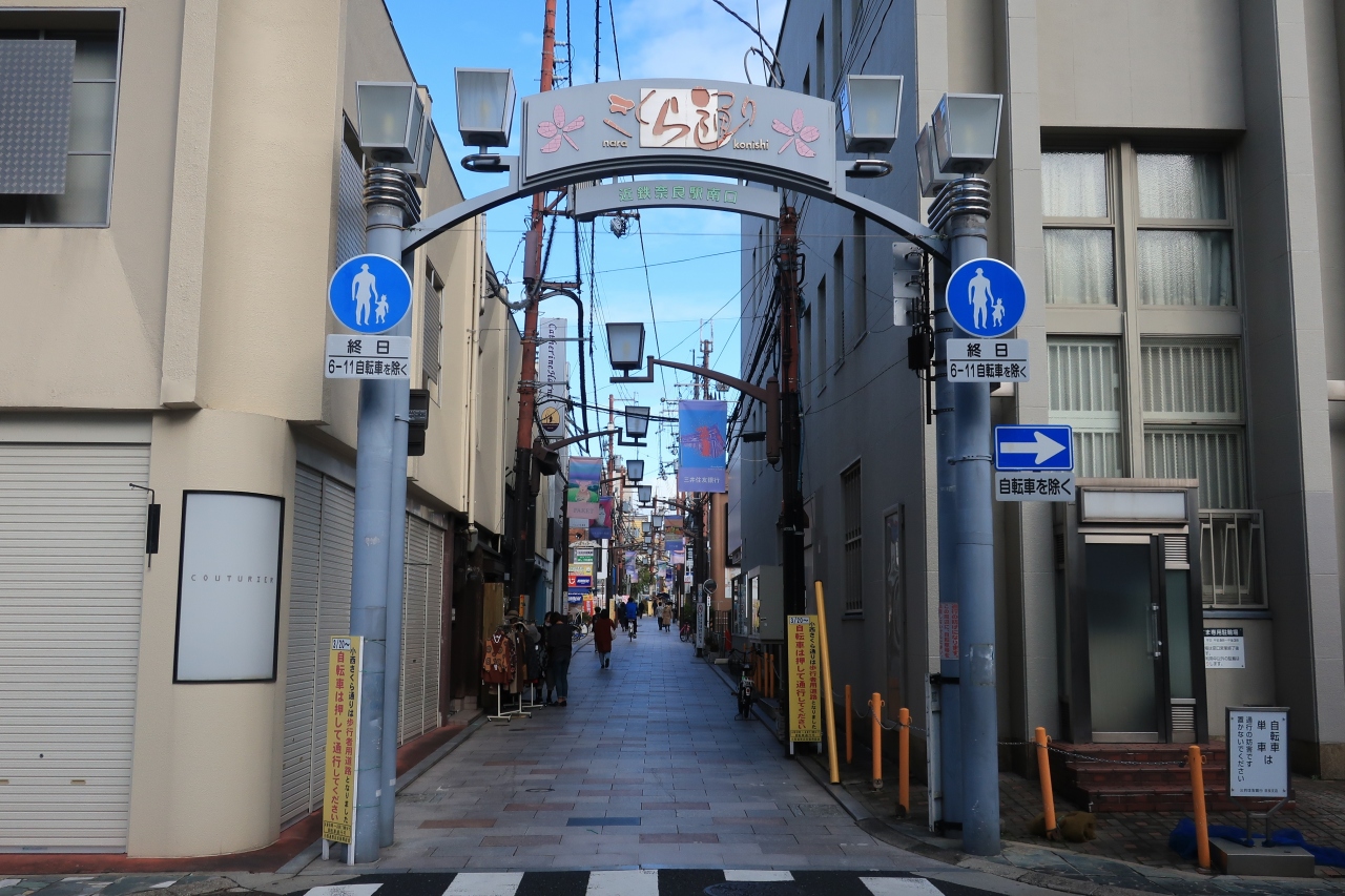 奈良のアーケード商店街である「東向商店街」の、イメージとしては一本西側に並行して走る商店街だ。「小西」という呼び名は、興福寺の少し西側という意味が込められている。東向商店街がいかにも観光型商店街だが、ここは少し道幅が狭いこともあり生活型、若者向け商店街という印象だ。