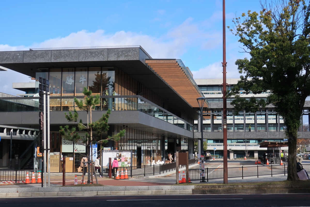 2019年に完成した観光バス用のターミナルだ。インバウンド客が急増し、観光バスが奈良公園周辺に深刻な渋滞を引き起こしていたことから需要調節による渋滞緩和を目指して建設された。地元では効果の賛否があるようだが、観光客の立場からはここの観光拠点性だけを紹介したい。ターミナル屋内には観光案内、資料館、飲食、物販などがそろっており、レスト施設として新たな選択肢が増えたことを歓迎する。