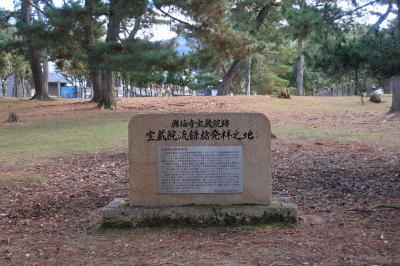 単なる石碑一本ではなく、立派なモニュメントが建立されている。この地で宝蔵院流槍術がいかに親しまれているかがうかがい知れるモニュメントだ。奈良国立博物館の一角。観光客的に宝蔵院といえば小説『宮本武蔵』に出てくる槍術しか知らない。老僧の殺気に驚いた武蔵が飛びのく場面だ。宝蔵院そのものは興福寺の塔頭だが、廃仏毀釈の折に取り壊されたという。