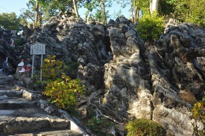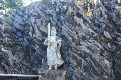 道路標識には「峰寺」と記してあるケースもあるので注意だ。小高い山の頂にあり、ここから見下ろす太平洋はしばし立ちすくむほどの絶景だ。航海の無事を祈って建立されたといういわれも納得できる。小ぶりなお寺だが、たどり着くまでの<少し困った感>といい、駐車場の観音像、山門、参道の奇岩、絶景となかなか楽しめるお寺でもある。特に奇岩は印象深い。溶岩か何かが風雨の浸食で芸術的な風貌に変わったのだろうが、岩の前に不動明王を安置した場所では紅蓮の炎のようにも見えた。
