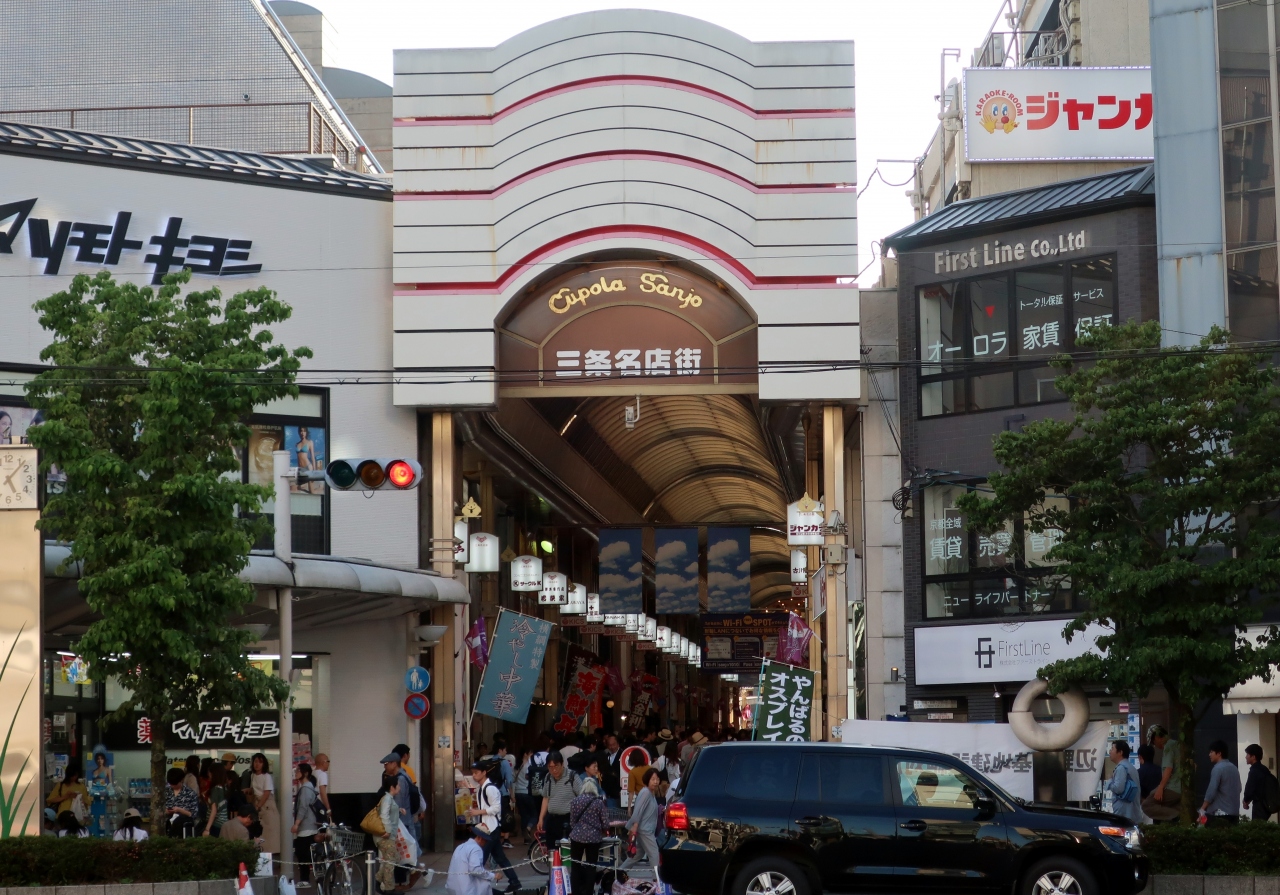 なぜか<河原町界隈>に繰り出す時は三条名店街の中の喫茶店で待ち合わせた。落ち合ってから木屋町に繰り出すもよし、四条方面に繰り出すもよし、河原町に繰り出すもよし。こうした地理の特性だけでなく、この商店街の持つ落ち着いた雰囲気が作用しているだろう。観光商店街ではなく、若者に特化した商店街というわけでもなく、老若男女、誰でも寄り付きやすい商店街だ。河原町側の入り口は、ショップは変化したものの、アーケードの形やロゴタイプ、たたずまいは昔と変わらず、どこか懐かしい。