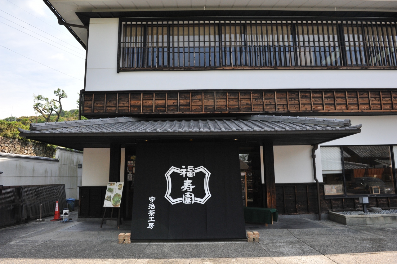 京都の手ぬぐい店舗「永楽屋」の宇治平等院店だ。京都市内でも数店舗を展開しており、オリジナルデザインの手ぬぐいを品ぞろえしている。伝統的な需要というよりも、観光客的な、とりわけ若者やインバウンド客が記念品や土産物で手に取りそうな品々が並ぶ。宇治橋西詰交差点の目立つ場所にある。