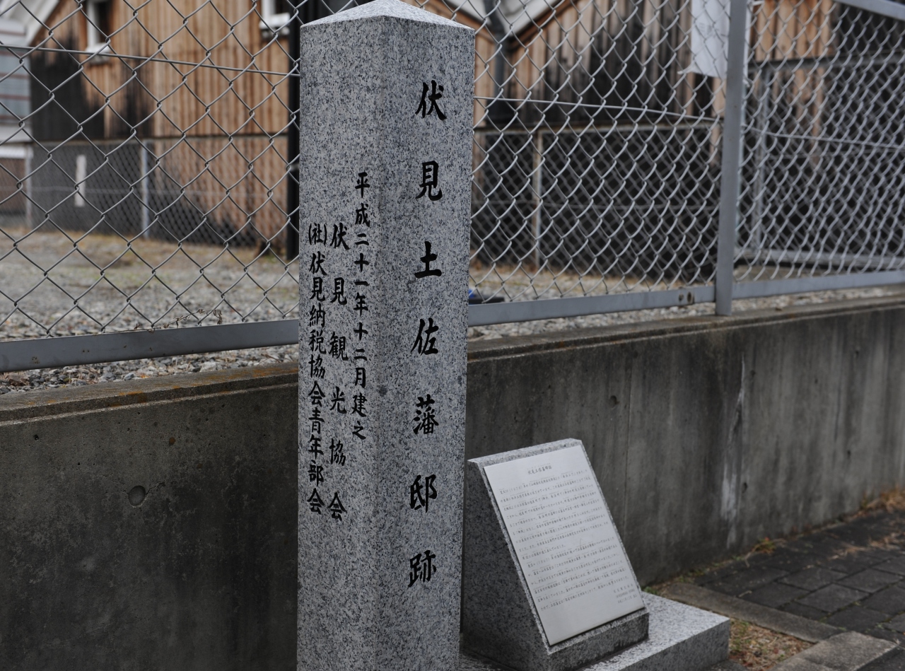 平成21年に立てられたという新しい石碑だ。京都の土佐藩邸跡は高瀬川のそばにもあるが、交通の要衝である伏見にも藩邸を設ける大名は多かったという。後年に「鳥羽伏見の戦い」と呼ばれる戦闘が発生した時、時の藩主である山内容堂は「これは私闘である」として参戦しないように指示したが、藩邸にいた板垣退助の独断で薩長軍に合流し、幕軍を蹴散らした。この働きで土佐藩はその功績を大いに認められたという。ぽつねんとした石碑を見るたびに思うが、もう少し説明があれば歴史への興味を掻き立てる場所はいくらでもある。