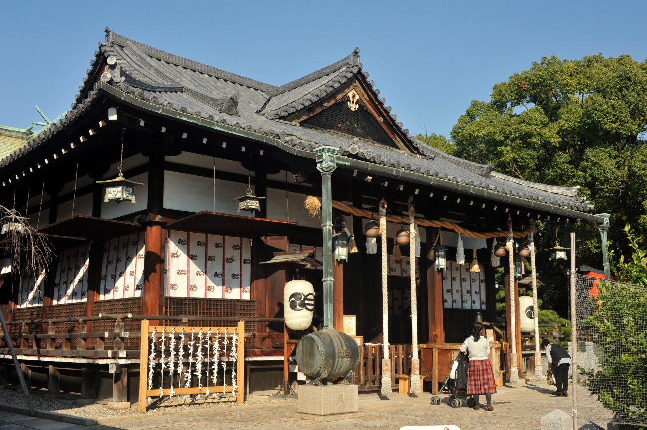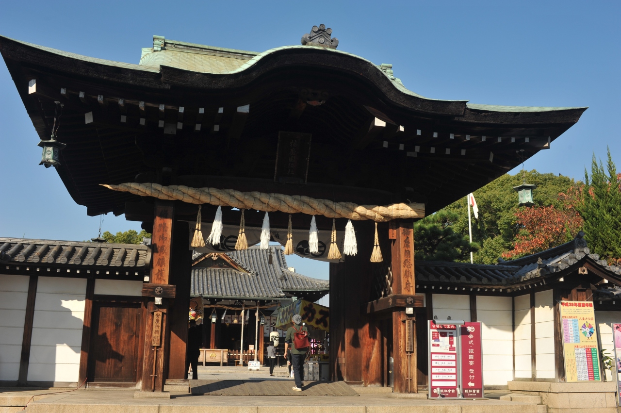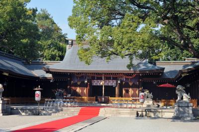 大手前公園の隣りに朱塗りの大きな総門が見える。国道2号から見る鳥居は通るたびに見知っていたが、大ぶりな総門は初めて見た。参拝した時は結婚式と七五三のお祓いを同時にやっていた。地面のマンホールにハートと「縁結び」と書かれていたのが印象的。境内に摂社が多い神社で、播磨の国総社と称されるいわれとなっているという。ちなみにだが、この神社の次に岡山県のある神社で御朱印を頂いた時、開いた御朱印帳の反対側に射楯兵主神社の御朱印を見かけた窓口の女性に「この神社の名前は何と読むのですか」と聞かれた。業界でも難読らしい。