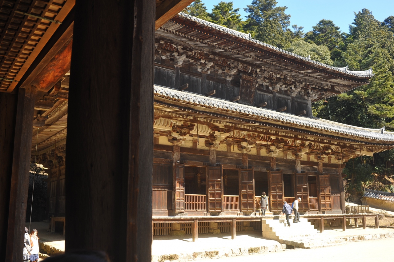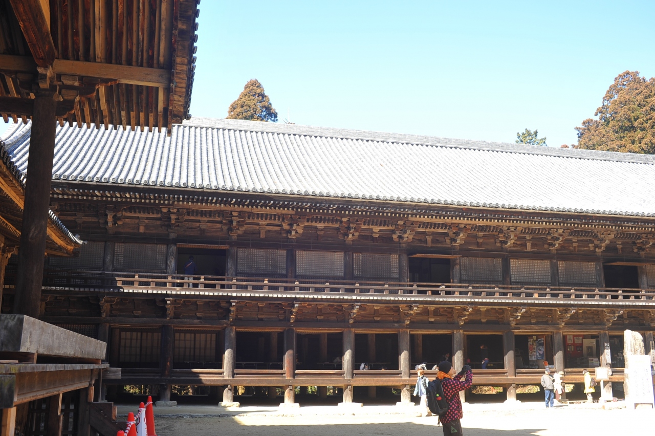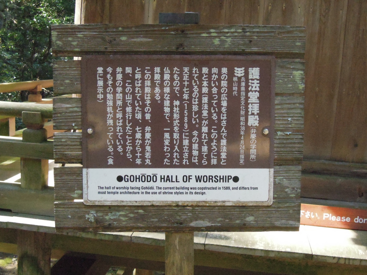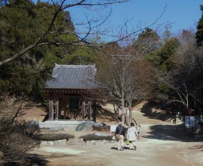 慈悲と書いて「こころ」と読ませる。ロープウエーの山上駅から徒歩で仁王門へ至る参道は西国巡礼の道と名付けられ、西国三十三カ所の各札所本尊を表した銅像が設置されている。ミニ巡礼ができる場所だが、鐘はその道のりに設置されている。1992年(平成4年)の建立で、参拝者が自由に撞くことができる。説明には「ひとりでも多くの方々に、潜在している慈悲心を起こし、願いを込めて鐘を打っていただく。その音は十方世界に響き渡り…」。もちろん、ついてみた。いい音響だ。