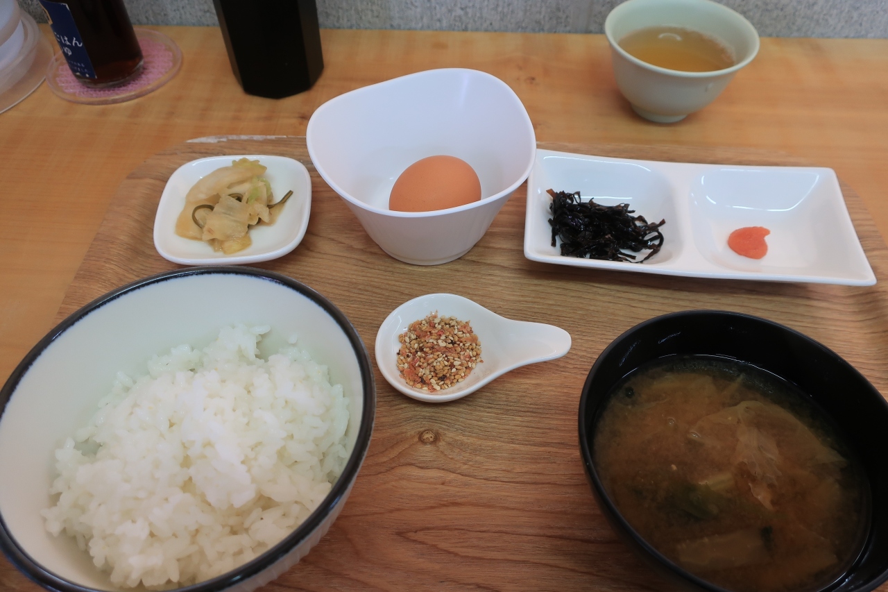 今まで休日に何度か足を運んだが、いつもとんでもない待ち時間なのでついつい敬遠してきた。今回は紅葉狩りの往路で平日の午前10時。さすがに先客はおらず、堂々と食した。店内席限定で500円の「黄福定食」と、店外席限定で複数人でシェアして食べる1500円の「釜炊きスペシャル」があったが、ここは奥さんと2人で「黄福定食」をチョイスした。ごはんと玉子のお代わり放題で、おかずにみそ汁、漬物、刻み昆布、明太子、そしてオリジナルのしょうゆ胡麻がついている。基本は玉子かけごはんに醤油をまわすのだが、おかずの昆布や明太子、しょうゆ胡麻をトッピングして味変するのがコツのようだ。ちょうどひつまぶしのように、箸を運ぶごとに違う味わいだ。今回は3杯おかわりしたが、単調にならず最後まで楽しめた。