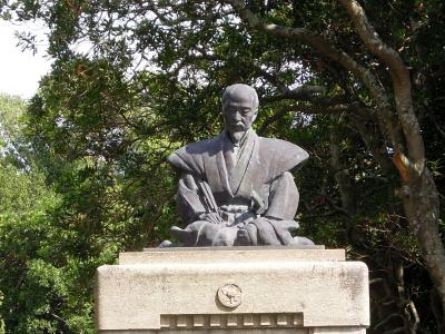 忠臣蔵では赤穂浪士が討ち入りの際に山鹿流陣太鼓を打ち鳴らすシーンが有名だ。大石内蔵助も山鹿流軍学をよく修めており、討ち入りの作戦はその軍学に基づいたとされる。実際にそうだったかどうかは不明だが、山鹿素行が赤穂藩に多大な影響を与えたのは事実のようだ。朱子学を批判し、赤穂藩お預けの身になった素行だが、その間、多くの影響を藩に、藩士に与えたと思われる。像が建立されたのは大正時代だ。