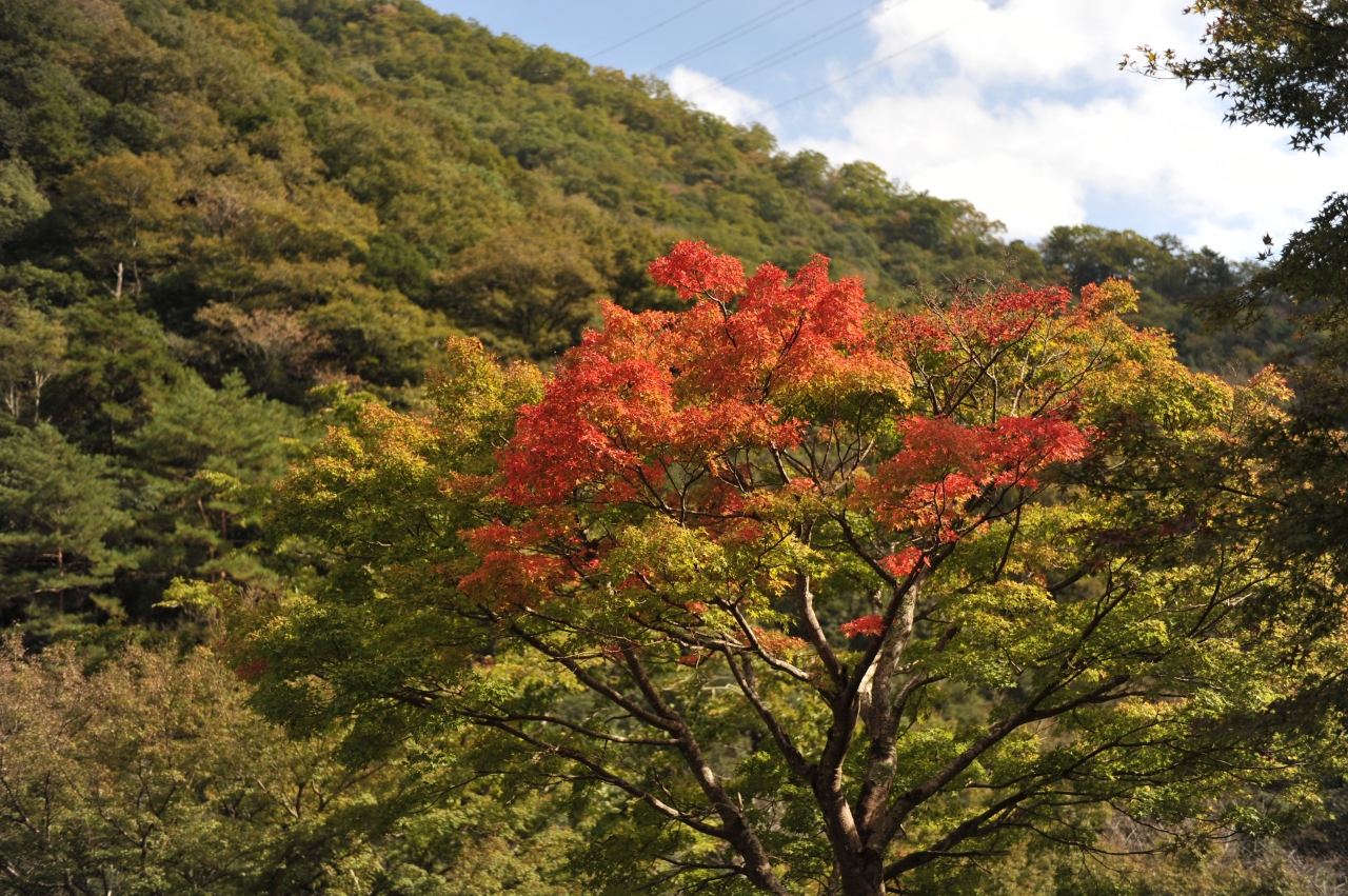 岡山市北区御津から吉備中央町に抜ける山道にある渓谷で、紅葉の名所だ。宇甘川沿いに広がっており、赤く色づいた木々を散策しながら楽しむ。とくに、川に架かる赤いつり橋が舞台装置としてとても効果的だ。また、川柳の石碑が点在する「せんりゅうのこみち」、外壁が流れ落ちる滝になっている公衆トイレ「岩戸のかわや」などが整備されており、面白い。