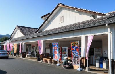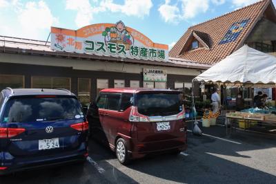 コスモスが咲き誇ることで知られるコスモス広場の隣接地にあるJAの直売所だ。比較的小ぶりで、野菜と加工品の売り場に分かれている。この日は10月下旬だったが、岡山県南に比べて遅くピークがくる瀬戸ジャイアンツ、シャインマスカットなどのブドウが店の前に特設売り場を広げていたほか、黒豆の枝豆、白菜、シイタケなどが売り場を彩っていた。また、ここは鯖寿しが名物のようで、多数陳列されていた。これはおいしそうだ。