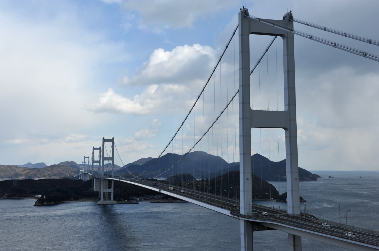 しまなみ海道に尾道から乗り入れると二番目にわたる橋だ。1983年の完成時は、吊り橋としては日本一の長さだった。生活橋としての側面も強いため、歩いても渡れる。景色も瀬戸内海独自の多島美が楽しめてとても気持ちがいい橋だ。