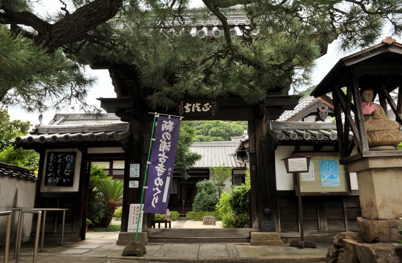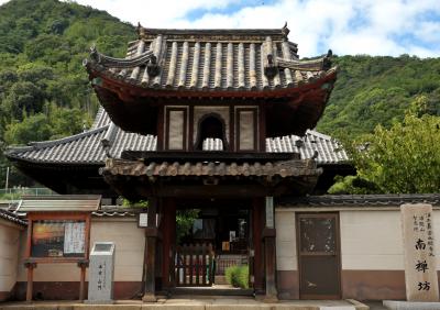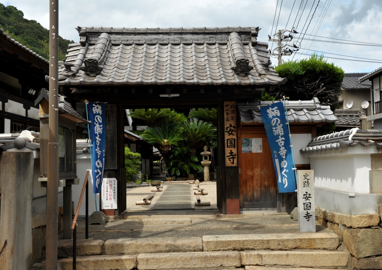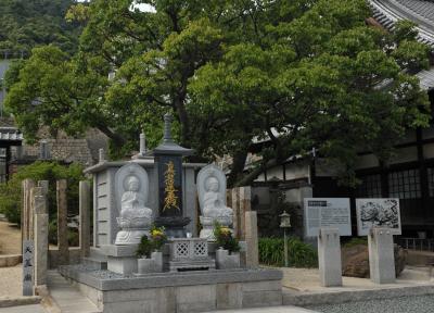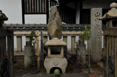 戦国時代のヒーローの一人だ。なぜ、こんな所に首塚があるのかと思ったら、この地に亡命幕府を構えていた足利義昭の首実検を受けたためという。山中鹿介の最期の地は岡山県高梁市落合町。中国山地のど真ん中あり、そこからわざわざ首実検のために瀬戸内海沿岸の鞆の浦まで送られてきたのかと思う。織田方の有力武将を打ち取った報は、亡命してきた元将軍の心境に何らかの作用があったのだろうか。鹿介の英雄譚を物語る史跡はこの首塚を含めて各地にあり、それだけ彼が後年の人々に愛されたのだとつくづく感じる。塚には小玉スイカがちょこなんと供えられていた。
