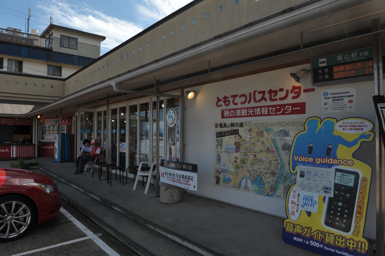 ともバスを運行する鞆鉄道の施設だ。路線バスの待合所であり、水産品、保命酒、土産品、特産品、B級グルメなどのショップでもある。「トモテツ」のミニ資料館、観光情報センターも併設する。鞆の浦観光にはとても便利な施設だ。
