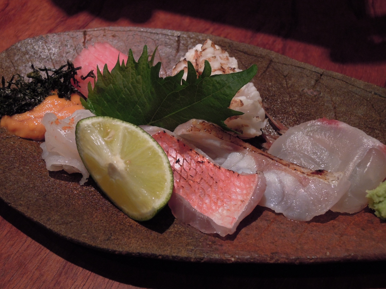ストレートな、昔ながらの料理を出すいわゆる「居酒屋」さんという感じだ。県庁通りと西川通りの交差点をほんの少し北に行ったところにこの店はある。4人だったので座敷を予約したが、2階に上がるのに一度外に出てから階段を上がる珍しいタイプのつくりだ。コースを予約したが、内容は魚料理をベースにした会席料理だ。前菜から始まり瀬戸内の魚介類、造りなどなどストレートな会席料理を堪能した。各グルメサイトでいま一つ評価につながっていないのは、今どきの創作系ではないからだろう。でも、こうした武骨さがいいと思うのだけれど。