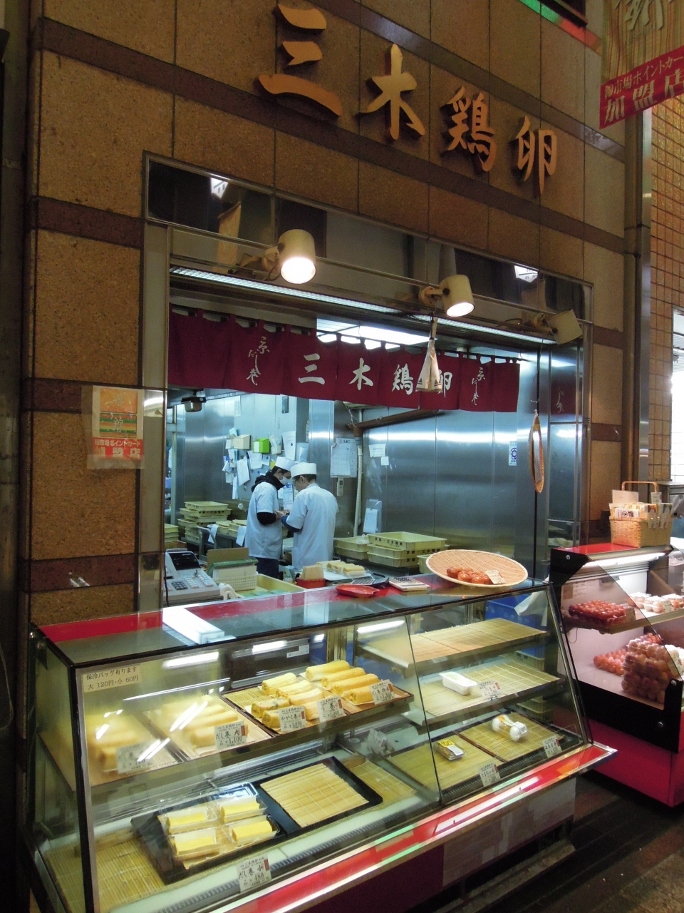 錦通りの中心部、富小路通りを西に入ったところにあるだし巻きの専門店。店頭から店内を見わたすと、職人がずらっとなんでフライパンで次から次へとだし巻きを焼き上げている。この光景は錦市場を象徴するものの一つだろう。店頭のケースに商品が並べてあり、そこから一つチョイスするスタイル。大きさに大中小あるほか、ウナギやアナゴ巻もある。生とパック入りがあり保存期間が違う。店舗は京都高島屋の地下にもある。