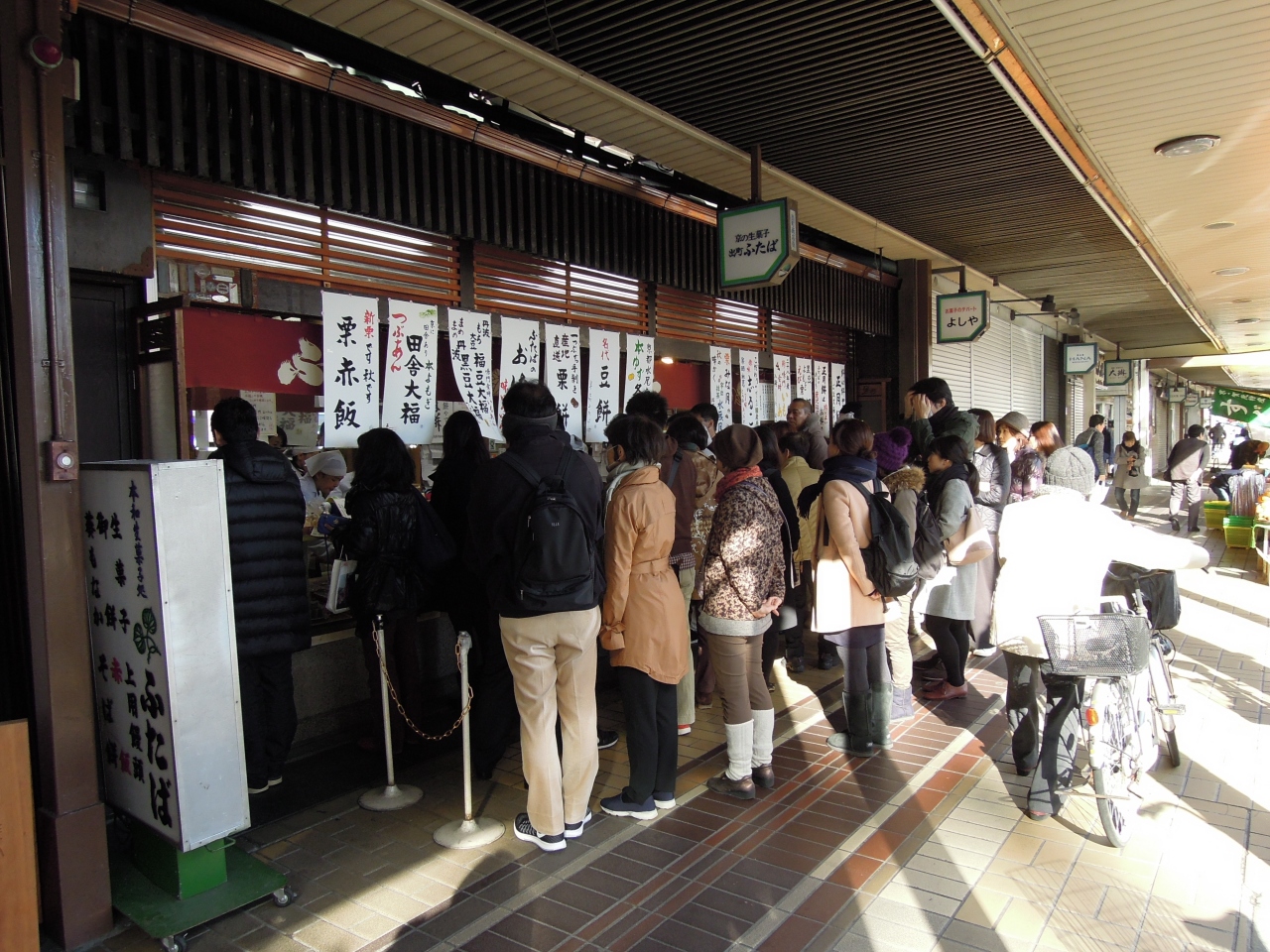 河原町今出川の交差点を少し北に上がった和菓子の老舗。豆餅のほか、お赤飯やおはぎ、季節のお菓子がある。代名詞の豆餅は江州(滋賀県)産の羽二重餅米を使った軟らかい餅と北海道産の赤エンドウ、こしあんの組み合わせで、塩による甘さがとにかく絶妙だ。本店のほか、京都高島屋、大丸京都店、JR京都伊勢丹でも売っている。日本橋高島屋、三越本店、阪急百貨店のうめだ本店でも買ったことがある。季節のお菓子も充実しており、春は桜餅、柏餅、夏の水無月、秋の栗餅、ゆずが入った冬至餅などがある。本店はいつも行列だ。ただ、大人数の社員が働いており、素晴らしい手際で客をこなしている。
