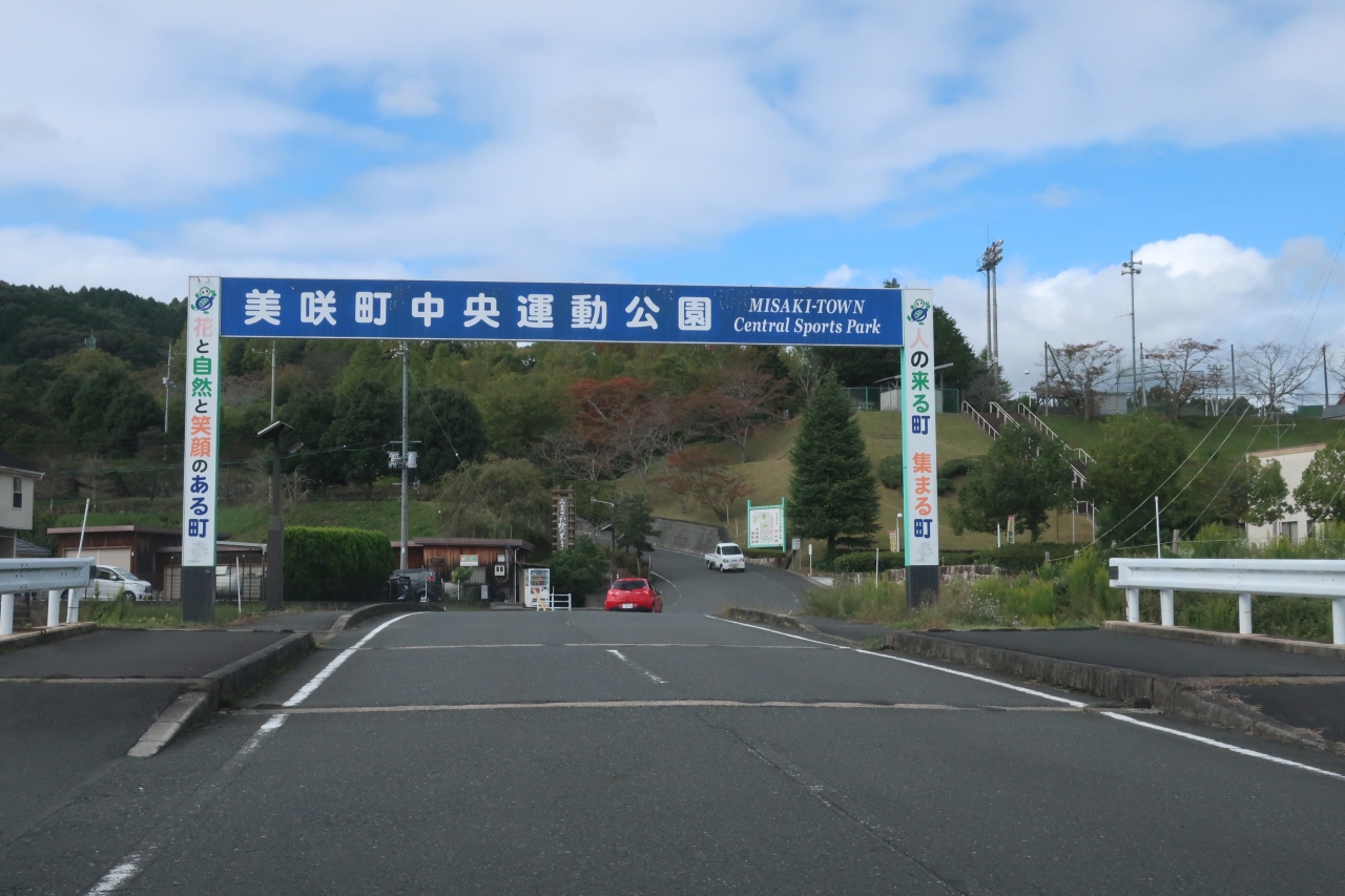 国道53号をはさんで美咲町役場の反対側、丘陵を上ったところにある施設だ。体育館や野球場、テニスコート、武道館、多目的広場などがある。卵かけごはんで一躍有名になった「食堂かめっち」もこの公園の中だ。10月に訪ねたが、紅葉が早くも色づいており、一足早く楽しめた。