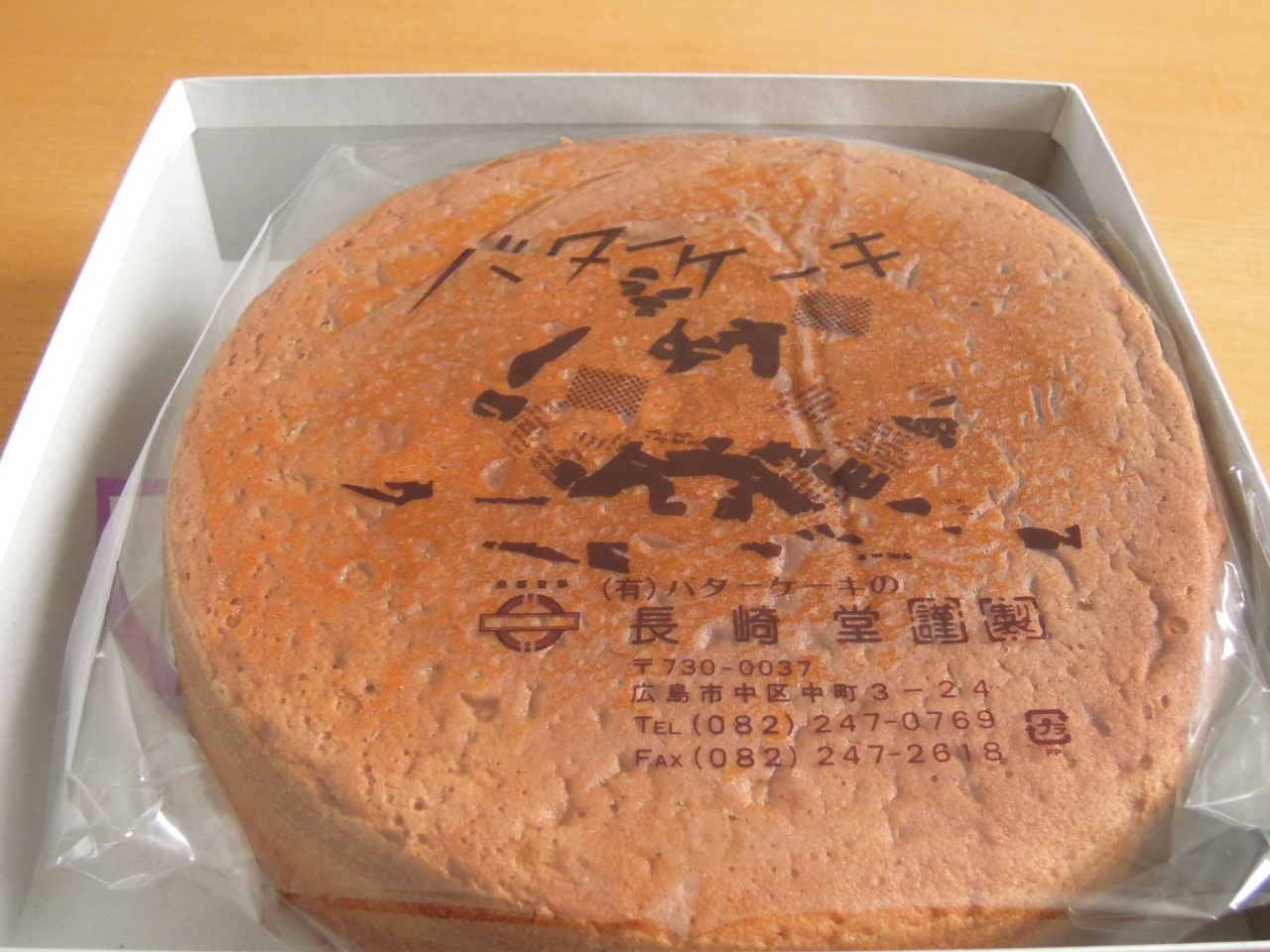 古くさい。だが、やめられないのが、ここのバターケーキだ。開店前に行くと列ができている。一般客だけでなく、社用族もいるから列が長くなる。逆に9時半ごろを狙っていくとスムーズに買えるケースが多い。品物自体はバターのかおり満載で、カステラのような昭和の甘さが漂う。直径18センチと21センチの二つの大きさがあり、現地では「小」と「中」と書いてある。さらに「大」もある。これは「中」が一つの箱に二つ入ったもの。値段は「中」二つと変わりないが、いつもこれを購入する。包装紙もクラシックだ。パッケージもケーキもまさに「昭和の味」満載だが、不思議と家族にも人気だ。これを買いたいがゆえに、広島出張時には近くのホテルを選ぶ。店の前に自動車を止めると店員に注意されるケースもあるので注意。
