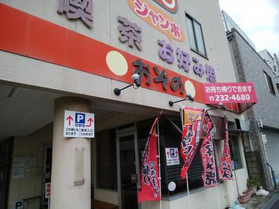 岡山商工会議所がある厚生町の交差点にある。回転ずしの「すし丸」の道路を挟んで反対側だ。「おぞの」の店名横には「喫茶とお好み焼き」と書いてあるほか、「ジャンボ」の文字が。店内は鉄板焼きのスペースと喫茶スペースがあり、昼食時にはオーダーにかかわりなく全面が昼食会場と化す。お好み焼きとモダン焼きという区別でメニューがあるので、どうやらベースは関西風のようだ。そのほか、焼きそば、焼うどん、ちゃんぽん、そばめしなどスタンダードなメニューが並ぶ。日替わりなど定食類も豊富だ。友人と一緒にモダン焼きの「小」、焼きそばの2玉、焼うどんの2玉をオーダーしたが、テーブルに来てから軽く後悔した。すごいボリュームだ。看板の「ジャンボ」という文字はこのボリュームを指しているのかもしれない。コスパは最高だ。が、腹八分目を守るにはもう一つ少ないメニューで十分だった。