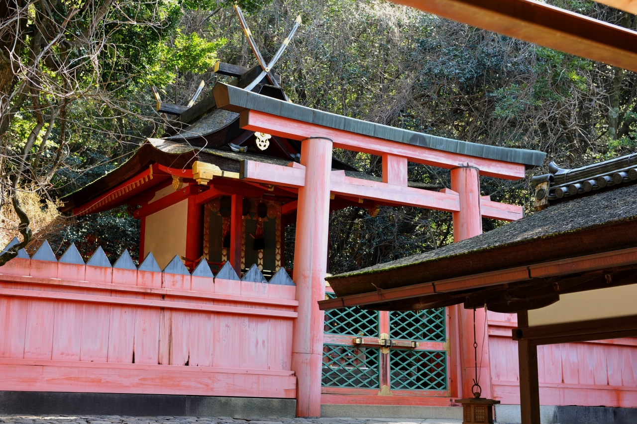春日大社の摂社の中でも若宮神社に次ぐ格を持つのがこの水谷神社だ。近くを流れる水谷川(みずやがわ)にならってか「みずや・じんじゃ」と読む。廃仏毀釈の前後で祭神が変わっており、現在は病気平癒のご利益を求める参拝客が多い。また、本殿前の子授石の存在も有名だ。春日大社の敷地の最北端にあり、東大寺から若草山と回った後に、真っ先に行き当たる摂社だ。水谷神社など水谷川の摂社を巡る「開運招福水谷めぐり」がある。