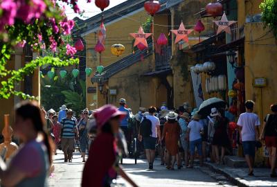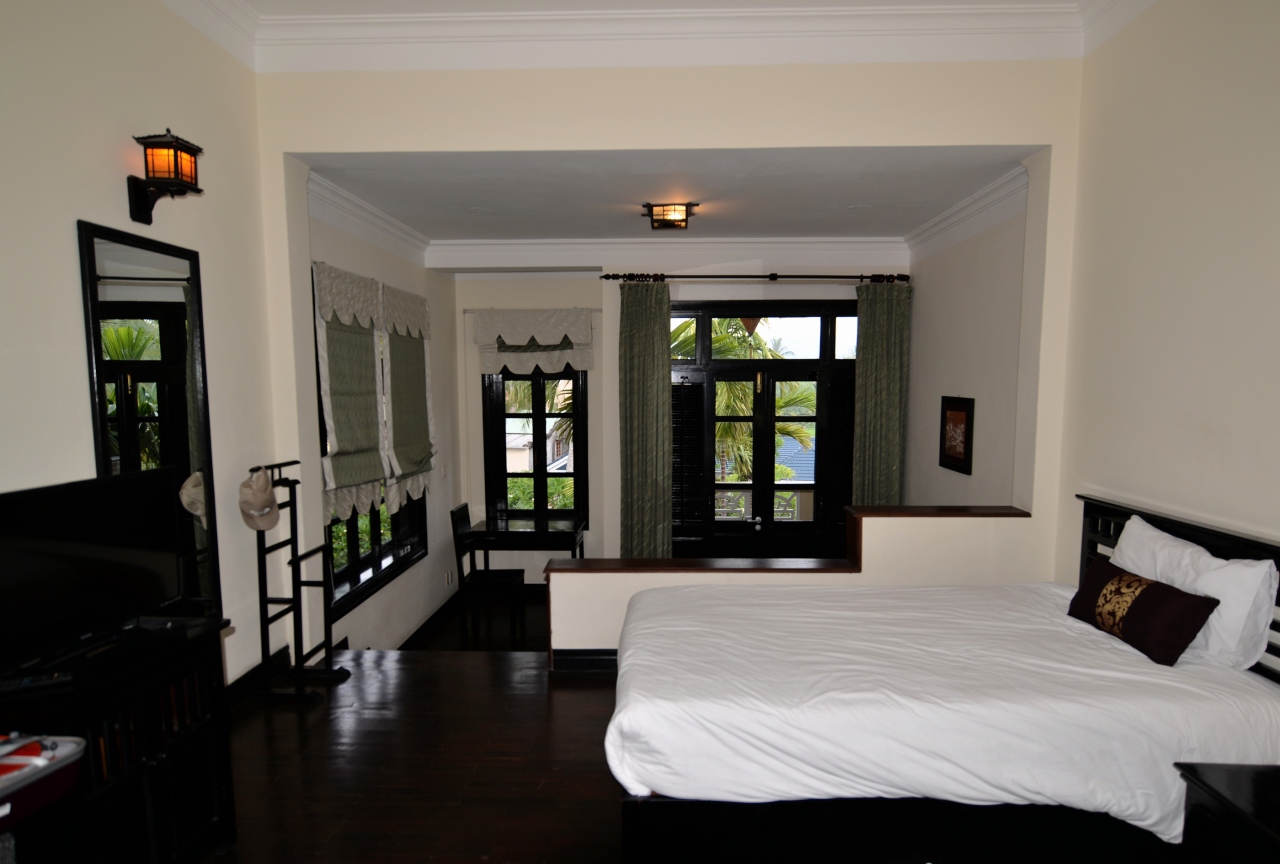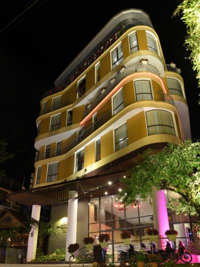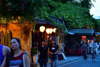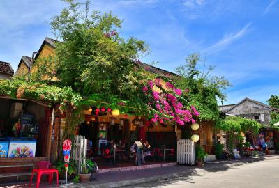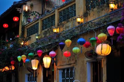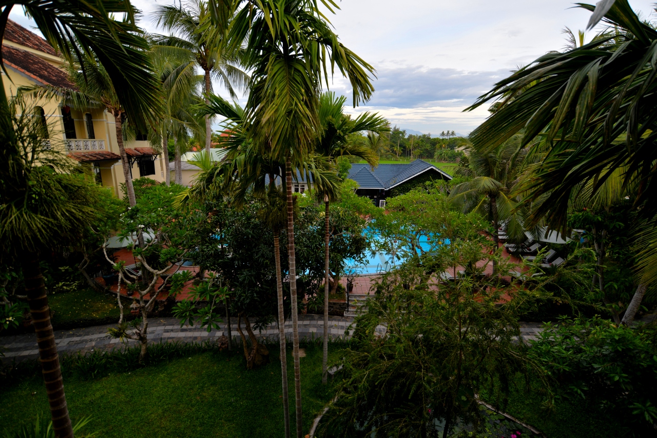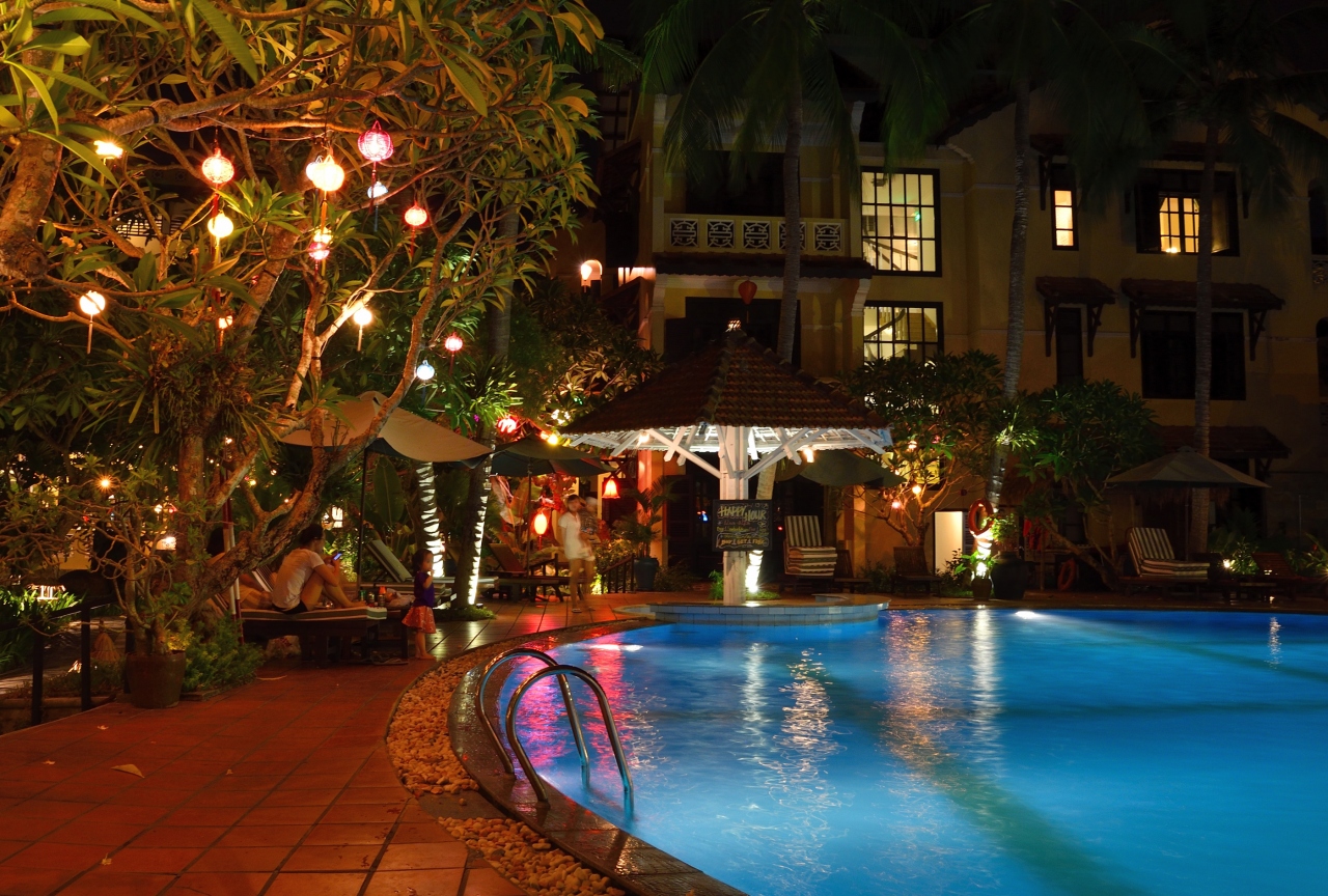 ホイアンの町からは少し離れていますが、ホテルの部屋は何棟かの建物に分かれていて長期滞在にも良いでしょう。夜には庭にランタンが灯っていて静かで良い雰囲気を作っています。プールでは遅くまで泳いでいる観光客もいました。ホテルの前の道路を渡ると飲み物やお菓子類を売っている店があり、その隣にはマッサージの店もありました。