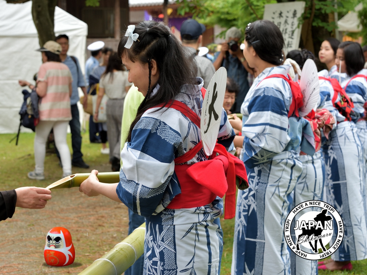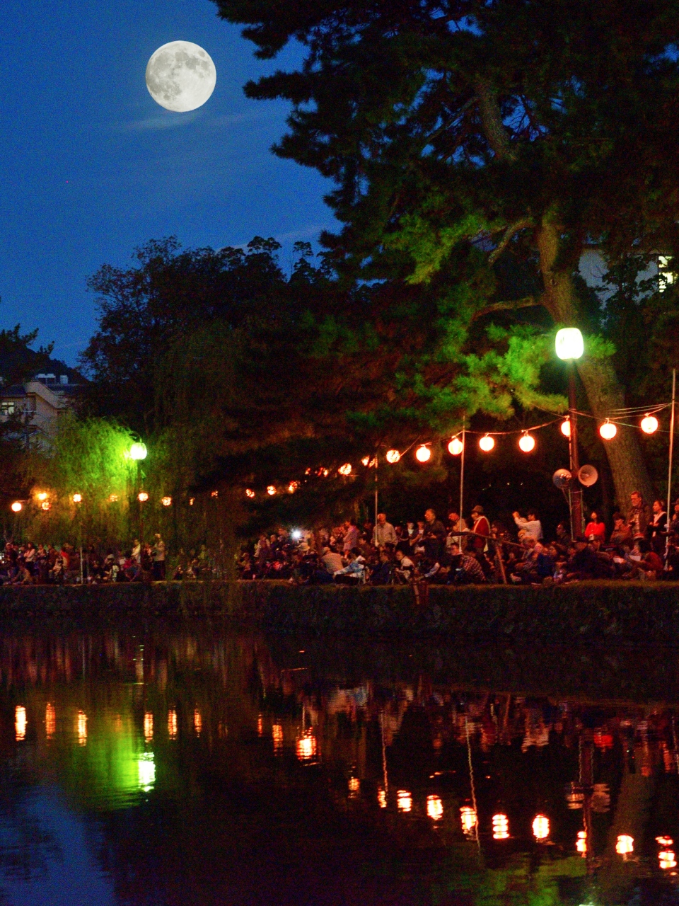 帝の寵愛の衰えたのを嘆き入水した采女をなぐさめるため毎年、仲秋の名月の日に行われます。