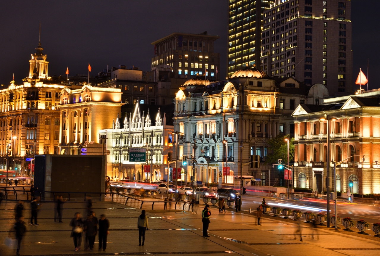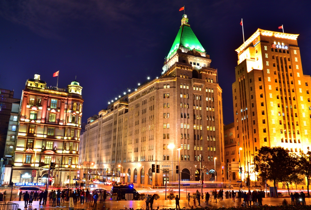 夜は浦東だけでなく、上海租界時代の建築物がある歴史的地区のライトアップが素敵です。ライトアップが美しすぎて私も時間を忘れて写真を撮っていました。