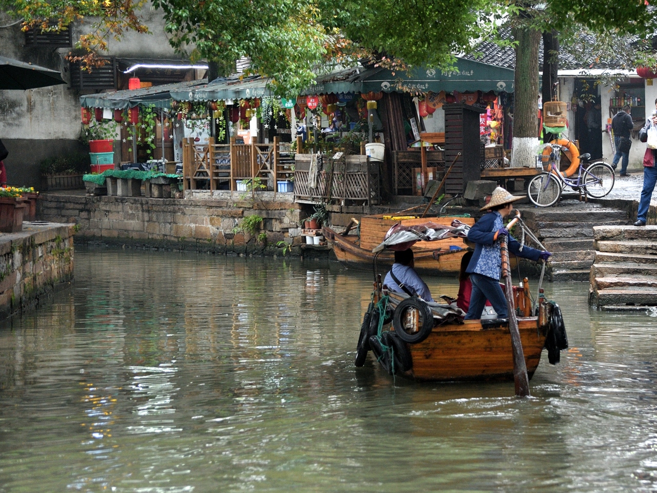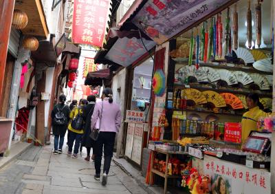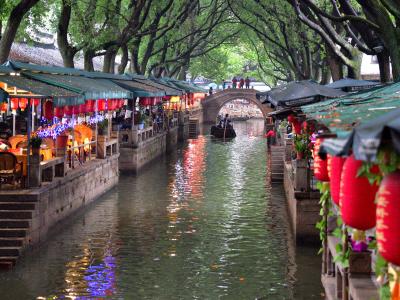他の運河と同様に運河沿いに土産物店等の商店が並んでいます。名物なのか臭豆腐と書いたの店の前は凄く臭い匂いが漂っていました。唐辛子の入った飴も名物なのか売っていましたので買いましたが、私は美味しかったです。- 旅行時期