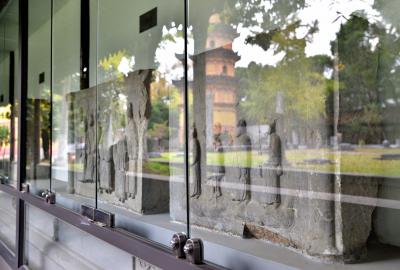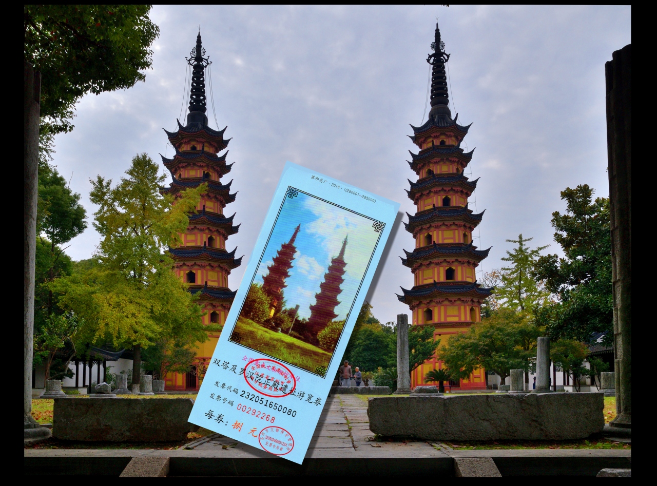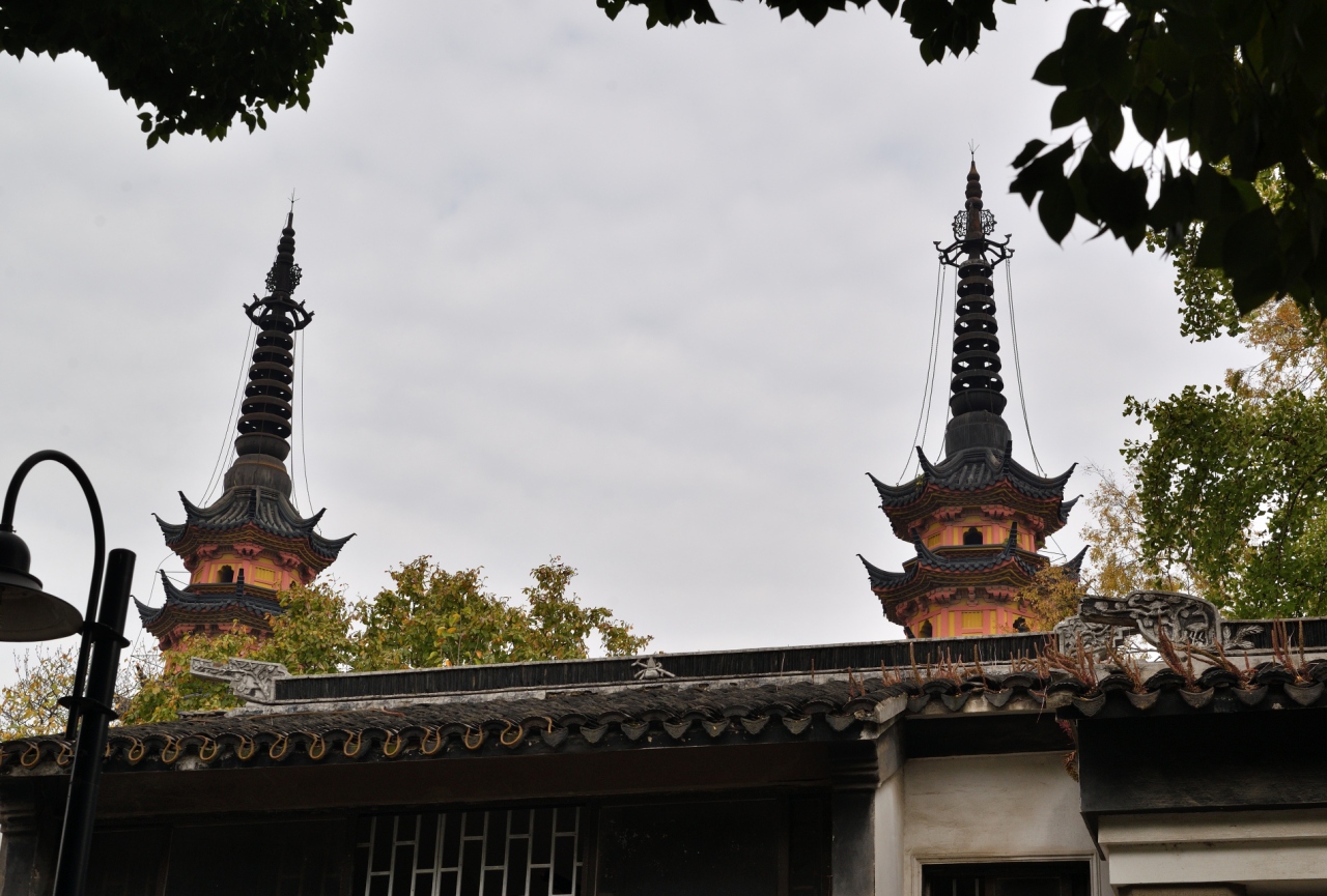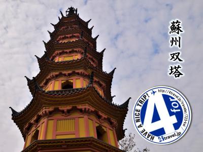 蘇州地下鉄1号線の臨頓路駅(リントンルー)から歩いて5分位で、町中にあるお寺の中に双塔(シュアンター)が立っています。近くまで行くと塀の中に塔が2本見えて来ます 毎券:捌元(8元)を入り口で払って入ります。